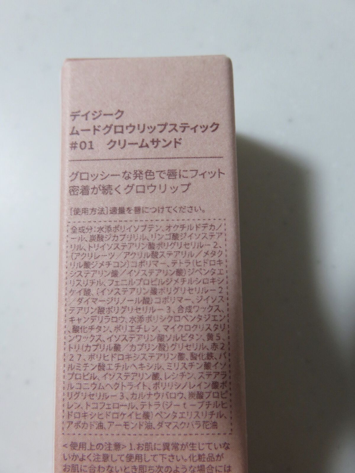 - <01 クリームサンド> 水添ポリイソブテン、オクチルドデカノール、炭酸ジカプリリル、リンゴ酸ジイソステアリル、トリイソステアリン酸ポリグリセリル-2、(アクリレーツ/アクリル酸ステアリル/メタクリル酸ジメチコン)コポリマー、テトラ(ヒドロキシステアリン酸/イソステアリン酸)ジペンタエリスリチル、フェニルプロピルジメチルシロキシケイ酸、(イソステアリン酸ポリグリセリル-2/ダイマージリノール酸)コポリマー、ジイソステアリン酸ポリグリセリル-3、合成ワックス、キャンデリラロウ、水添ポリシクロペンタジエン、酸化チタン、ポリエチレン、マイクロクリスタリンワックス、イソステアリン酸ソルビタン、黄5、トリ(カプリル酸/カプリン酸)グリセリル、赤227、ポリヒドロキシステアリン酸、酸化鉄、パルミチン酸エチルヘキシル、ミリスチン酸イソプロピル、イソステアリン酸、レシチン、ステアラルコニウムヘクトライト、ポリリシノレイン酸ポリグリセリル-3、カルナウバロウ、炭酸プロピレン、トコフェロール、テトラ(ジ-t-ブチルヒドロキシヒドロケイヒ酸)ペンタエリスリチル、アボカド油、アーモンド油、ダマスクバラ花油 <02 ヌードパンプキン> 水添ポリイソブテン、オクチルドデカノール、炭酸ジカプリリル、リンゴ酸ジイソステアリル、トリイソステアリン酸ポリグリセリル-2、(アクリレーツ/アクリル酸ステアリル/メタクリル酸ジメチコン)コポリマー、テトラ(ヒドロキシステアリン酸/イソステアリン酸)ジペンタエリスリチル、フェニルプロピルジメチルシロキシケイ酸、(イソステアリン酸ポリグリセリル-2/ダイマージリノール酸)コポリマー、ジイソステアリン酸ポリグリセリル-3、合成ワックス、キャンデリラロウ、水添ポリシクロペンタジエン、酸化チタン、ポリエチレン、酸化鉄、マイクロクリスタリンワックス、イソステアリン酸ソルビタン、黄4、トリ(カプリル酸/カプリン酸)グリセリル、ポリヒドロキシステアリン酸、赤202、パルミチン酸エチルヘキシル、ミリスチン酸イソプロピル、イソステアリン酸、レシチン、ジイソステアリン酸ポリグリセリル-2、ステアラルコニウムヘクトライト、ポリリシノレイン酸ポリグリセリル-3、カルナウバロウ、炭酸プロピレン、トコフェロール、テトラ(ジ-t-ブチルヒドロキシヒドロケイヒ酸)ペンタエリスリチル、アボカド油、アーモンド油、ダマスクバラ花油 <03 ピーチズ> 水添ポリイソブテン、オクチルドデカノール、炭酸ジカプリリル、リンゴ酸ジイソステアリル、トリイソステアリン酸ポリグリセリル-2、(アクリレーツ/アクリル酸ステアリル/メタクリル酸ジメチコン)コポリマー、テトラ(ヒドロキシステアリン酸/イソステアリン酸)ジペンタエリスリチル、フェニルプロピルジメチルシロキシケイ酸、(イソステアリン酸ポリグリセリル-2/ダイマージリノール酸)コポリマー、ジイソステアリン酸ポリグリセリル-3、合成ワックス、キャンデリラロウ、水添ポリシクロペンタジエン、酸化鉄、酸化チタン、ポリエチレン、マイクロクリスタリンワックス、イソステアリン酸ソルビタン、トリ(カプリル酸/カプリン酸)グリセリル、赤104(1)、ポリヒドロキシステアリン酸、黄4、パルミチン酸エチルヘキシル、ミリスチン酸イソプロピル、イソステアリン酸、レシチン、ジイソステアリン酸ポリグリセリル-2、ステアラルコニウムヘクトライト、ポリリシノレイン酸ポリグリセリル-3、カルナウバロウ、炭酸プロピレン、トコフェロール、テトラ(ジ-t-ブチルヒドロキシヒドロケイヒ酸)ペンタエリスリチル、アボカド油、アーモンド油、ダマスクバラ花油 <04 ローズヒップ> 水添ポリイソブテン、オクチルドデカノール、炭酸ジカプリリル、リンゴ酸ジイソステアリル、トリイソステアリン酸ポリグリセリル-2、(アクリレーツ/アクリル酸ステアリル/メタクリル酸ジメチコン)コポリマー、テトラ(ヒドロキシステアリン酸イソステアリン酸)ジペンタエリスリチル、フェニルプロピルジメチルシロキシケイ酸、(イソステアリン酸ポリグリセリル-2/ダイマージリノール酸)コポリマー、ジイソステアリン酸ポリグリセリル-3、合成ワックス、キャンデリラロウ、水添ポリシクロペンタジエン、酸化チタン、ポリエチレン、酸化鉄、マイクロクリスタリンワックス、イソステアリン酸ソルビタン、トリ(カプリル酸/カプリン酸)グリセリル、ポリヒドロキシステアリン酸、黄4、赤202、ジイソステアリン酸ポリグリセリル-2、パルミチン酸エチルヘキシル、ミリスチン酸イソプロピル、イソステアリン酸、レシチン、ステアラルコニウムヘクトライト、ポリリシノレイン酸ポリグリセリル-3、カルナウバロウ、炭酸プロピレン、トコフェロール、テトラ(ジ-t-ブチルヒドロキシヒドロケイヒ酸)ペンタエリスリチル、アボカド油、アーモンド油、ダマスクバラ花油 <05 ベビーサーモン> 水添ポリイソブテン、オクチルドデカノール、炭酸ジカプリリル、リンゴ酸ジイソステアリル