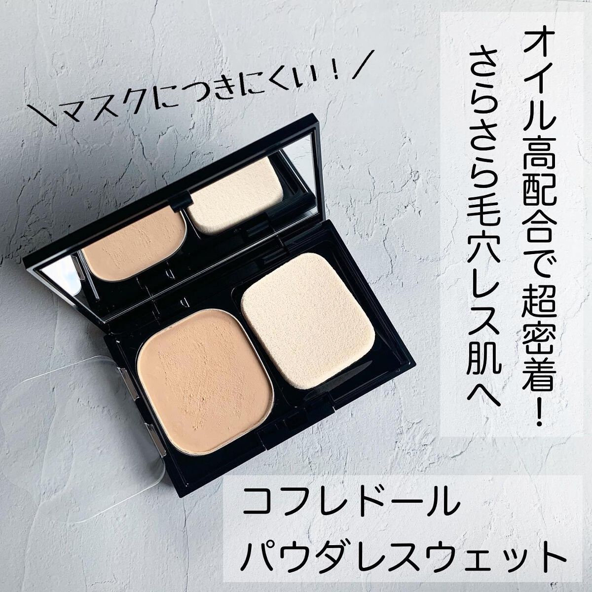 オイル高配合だからピタッと密着して毛穴をカバーし、粉感もない美しい仕上がり◎ 粉っぽく無い質感も好き!オイルの配合量が高いから粉浮きが目立たない◎ ナチュラルに見えるのに、隠したいポイントはきちんとカバーできているのが凄い。