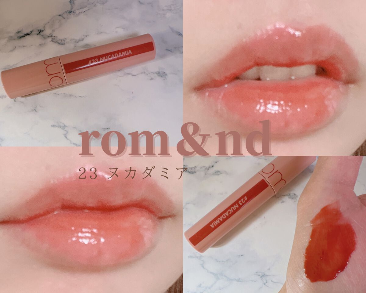 香りも甘い匂いで付け心地も良くて 色味も可愛いです✨ そこまでペタペタしないからあまり気にならないし乾燥もあまり感じないからロムアンドのリップ良いです👍 塗った瞬間から唇がプルプルのツヤ唇に なって可愛いです😍