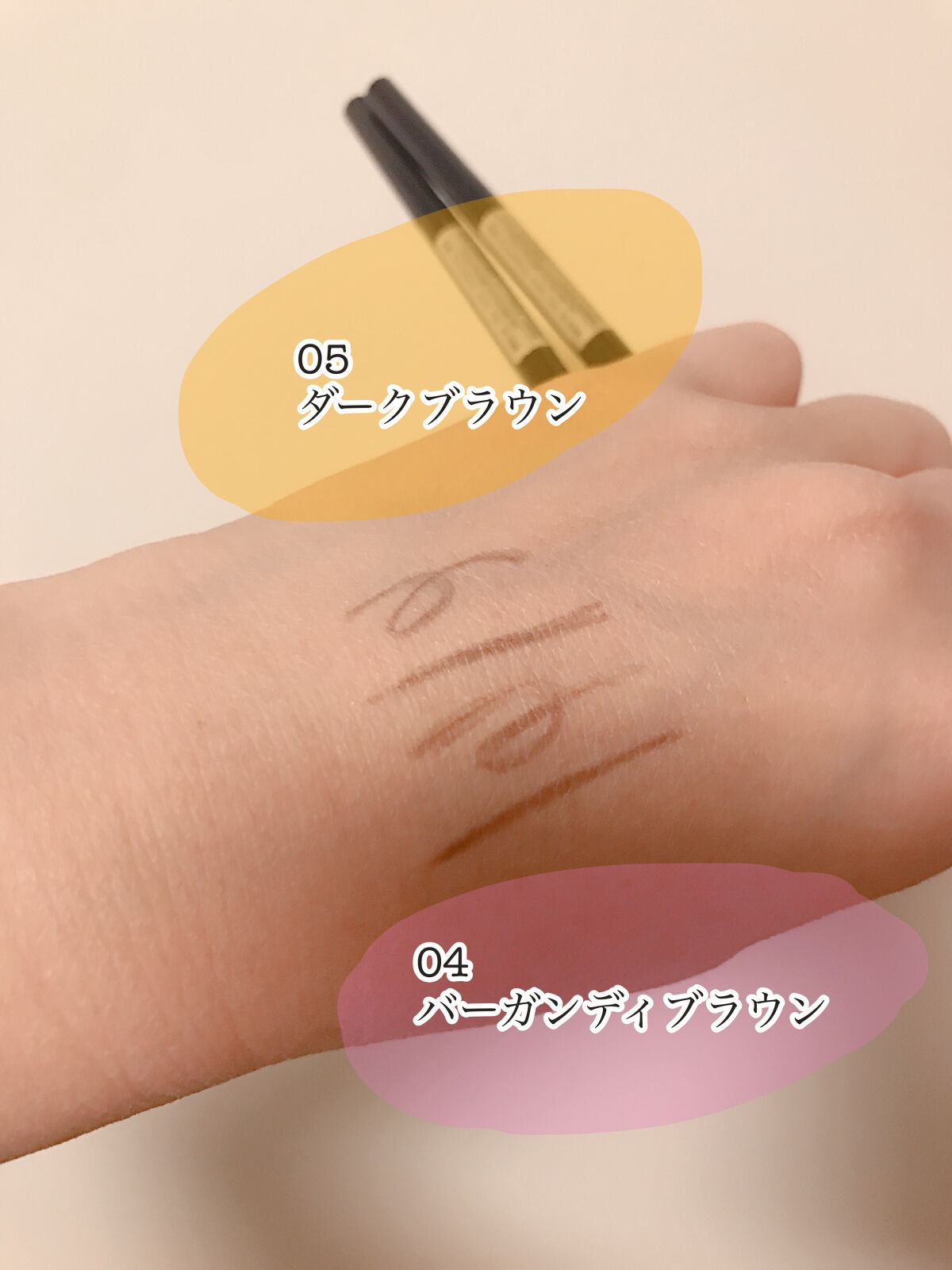 - <ライトブラウン> 水添パーム油、合成モクロウ、窒化ホウ素、シリ カトリ脂肪酸(C10-18) グリセリル、ステアリン酸亜 鉛、トコフェロール、レシチン、パルミチン酸アスコルビ ル、ステアリン酸グリセリル、オレイン酸グリセリル、ク エン酸、酸化鉄、酸化チタン、黄4 <アッシュブラウン> 水添パーム油、合成モクロウ、窒化ホウ素、シリ カ トリ脂肪酸(C10-18)グリセリル、ステアリン酸亜鉛、トコフェロール、レシチン、パルミチン酸アスコルビル、ステアリン酸グリセリル、オレイン酸グリセリル、クエン 酸、酸化鉄、酸化チタン、黄4 <ナチュラルブラウン> 水添パーム油、セテアリルメチコン、窒化ホウ 素、シリカ、トリ脂肪酸(C10-18) グリセリル、合成モク ロウ、ステアリン酸亜鉛、トコフェロール、レシチン、パ ルミチン酸アスコルビル、ステアリン酸グリセリル、オレ イン酸グリセリル、クエン酸、酸化鉄、酸化チタン、青1 <バーガンディブラウン> 水添パーム油、合成モクロウ、窒化ホウ素、シリ カ、トリ脂肪酸(C10-18)グリセリル、ステアリン酸亜 鉛、トコフェロール、レシチン、パルミチン酸アスコルピ ル、ステアリン酸グリセリル、オレイン酸グリセリル、クエン酸、酸化鉄、酸化チタン <ダークブラウン> 水添パーム油、合成モクロウ、窒化ホウ素、シリ カトリ脂肪酸(C10-18)グリセリル、ステアリン酸亜鉛、トコフェロール、レシチン、パルミチン酸アスコルビル、ステアリン酸グリセリル、オレイン酸グリセリル、クエン 酸、酸化鉄、酸化チタン、青1 <ブラック> 水添パーム油、合成モクロウ、文化ホウ素、シリ カトリ脂肪酸(C10-18)グリセリル、ステアリン酸、トコフェロール、レシチン、パルミチン酸アスコルビ ル、ステアリン酸グリセリル、オレイン酸グリセリル、クエン酸、酸化鉄、酸化チタン、黄4、青1
