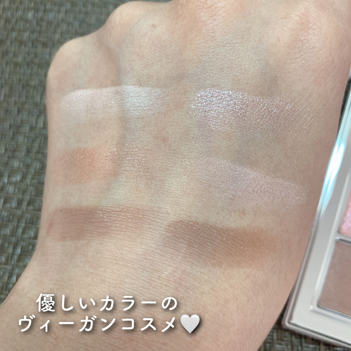 - シアーマット、シアーサテン、シアーグリッターなどさまざまなテクスチャーが入った6色構成のヴィーガンアイシャドウパレット。落ち着いたヌードベースと暗めのピンクベースがトーンオントーンで構成され、誰でも簡単にレイヤリングを楽しめます。さらには鮮やかな透明グリッターが爽やかな輝きを演出し、しっとりソフトな水分感のあるテクスチャーで、塗りやすく粉飛びなしの完璧なフィット感を実現。ほのかに優しい発色がナチュラルで美しい目元へと導きます。