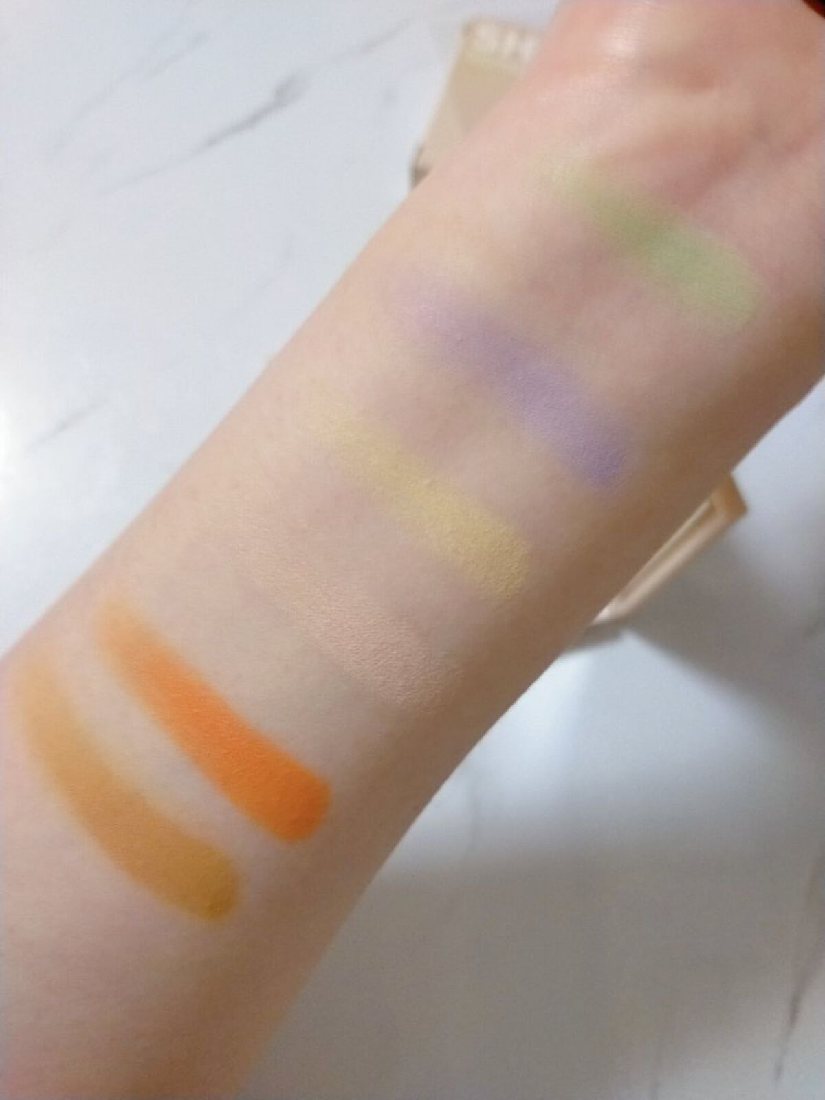 マカロンカラーが可愛い6色のコンシーラー。クリームコンシーラーで、すっと伸びてなじんでくれます。 軽くて自然になじんでくれます。どの色も肌になじませると優しく自然になじんでくれます。 カバーしたい場所や、その日のメイクによって使い分け出来る6色パレットで気に入っています。