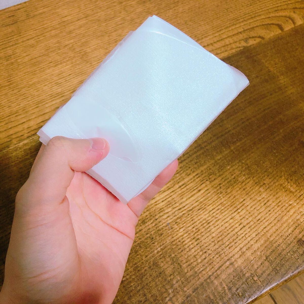 厚めのシートにとろみのあるローションが染み込んでいて贅沢な感じ。 横幅が大きく作られているので、はみ出た部分は少し折るとよし。 フィット感はいまいちな印象でしたが、特別な日にぜひ使いたいなと思いました!