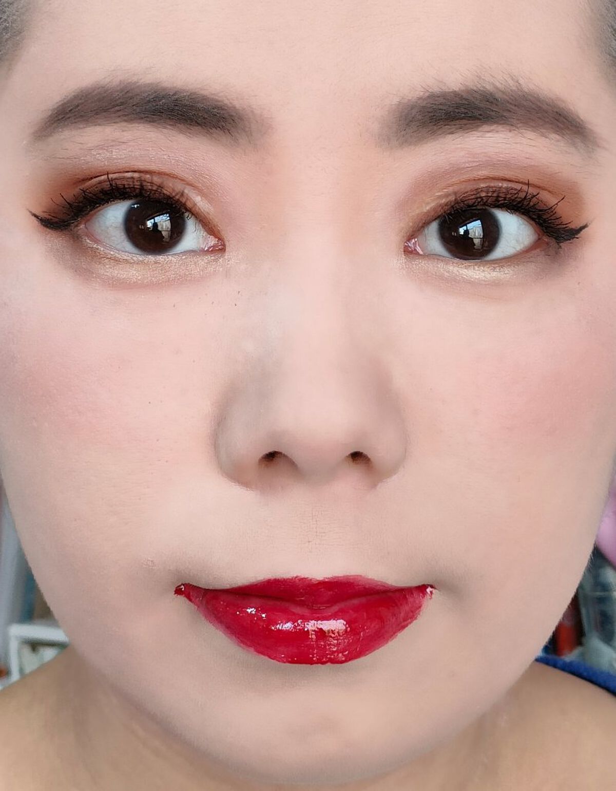 アリィー ニュアンスチェンジUV ジェル RSを、顔全体にまんべんなく塗ります。 RMK RMK ジェルクリーミィファンデーション 103を、顔全体にまんべんなく塗ります。 ジョンソンベビー ジョンソン ベビーパウダーを、顔全体にまんべんなく軽くはたきます。 THE BODY SHOP bronze shade warm glowを、両頬に塗ります。 KATE リフレクトミラーアイズ BR-1の締め色を、眉毛全体にまんべんなく塗ります。 URGLAM UR GLAMBLOOMING EYE COLOR PALETTE 01を、使用しました。 ちふれ リキッド アイライナー 筆ペンタイプ BK30 ブラックを、塗ります。 CEZANNE エアリーカールマスカラを、まつ毛全体にまんべんなく塗ります。 MAYBELLINE NEW YORK コロッサルボリュームエクスプレスを、まつ毛全体にまんべんなく塗ります。 MAYBELLINE NEW YORK SPステイ マットインク 135を、唇全体にまんべんなく塗ります。