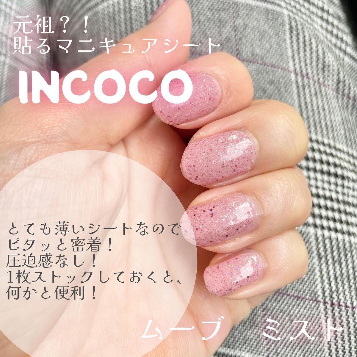 INCOCOマニキュアシート"貼るだけでサロン級ネイルが完成"ということで有名なINCOCO♥️液体タイプのマニキュアから出来ているので薄めのシート💫貼るタイプのマニキュアシートの中でもかなり薄めだと思います🙆🏻♀️よく伸び、爪のカーブにも...
