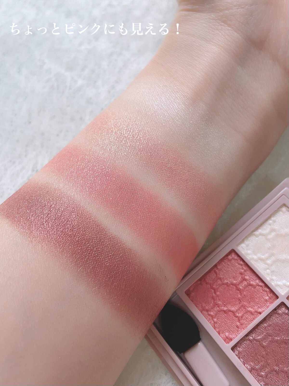 もう見ただけで絶対可愛い色なの分かる! 使いやすそうだなぁ〜って思った✌︎ 実際使ってみると発色は薄めだった! でも流行りのふんわりした感じ🤤💕 だからメイク初心者さんでも使いやすいアイパレット✨ このくすみカラーたまらないよね🤤💕 可愛いと言うより大人可愛い仕上がりになる♪ グラデにしても可愛いし 一色だけでも可愛い😍♥️ このワインモーヴはピンクメイクや赤系メイクにめちゃくちゃ合うの!! マスカラもアイシャドウも両方オススメです💕