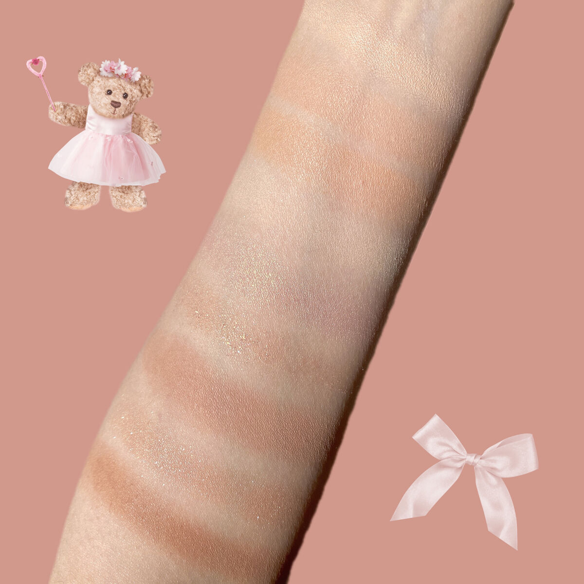 やっぱり可愛い…! 思ったよりコンパクトなサイズ感のアイシャドウパレットでした! このパレット全カラー使いやすい!! アイシャドウパレットのブラウンカラーは2色とも柔らかい発色なので使いやすい♡ そしてパールシマーのラメ感が可愛すぎる♡ 全体的に淡く柔らかい発色なのでとくにナチュラルメイクが好きな方におすすめしたい 𓂃 𓈒𓏸