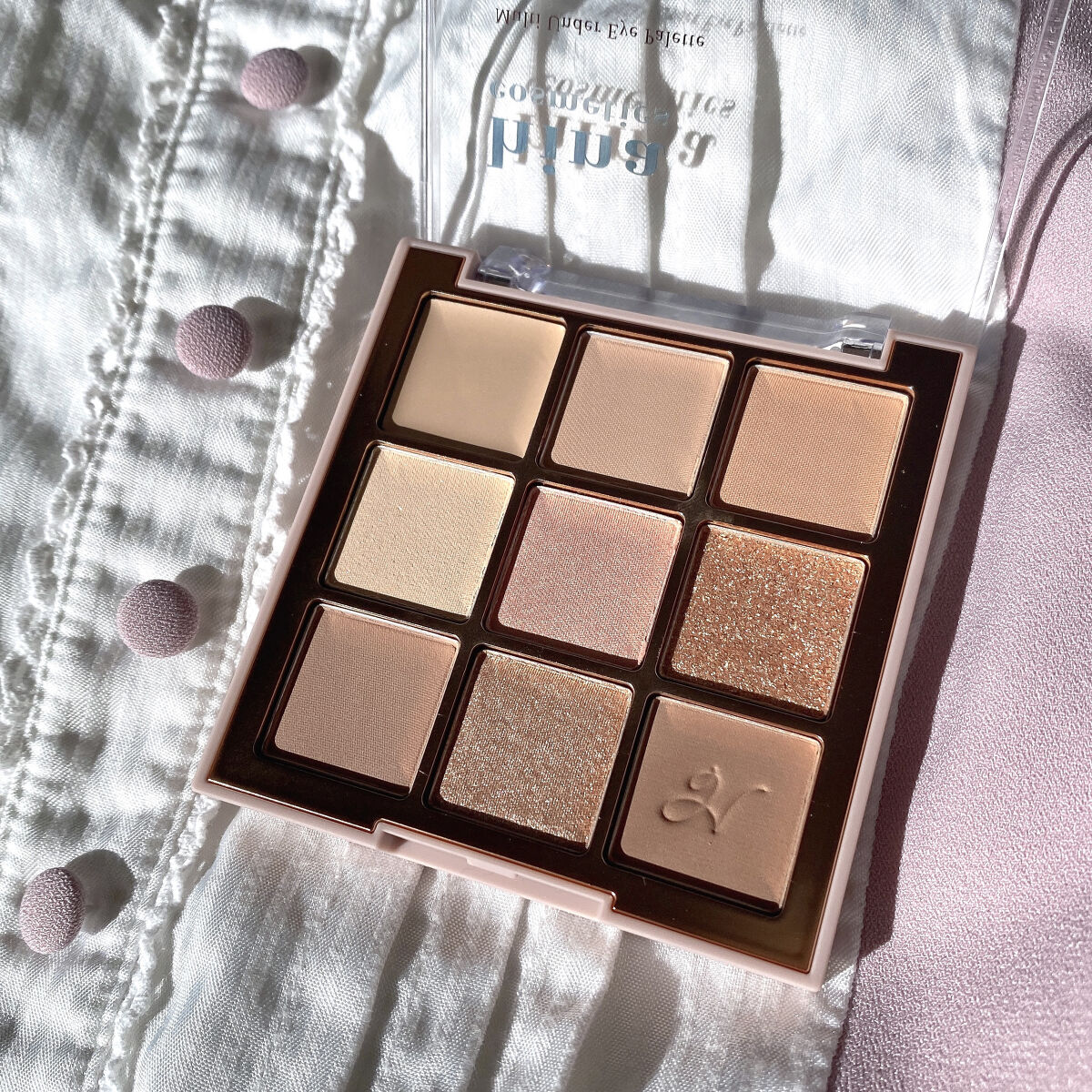 - 涙袋用コンシーラー入りの9色アイシャドウパレット。涙袋用コンシーラーや涙袋の影カラー、涙袋を立体的にみせるハイピグメントのラメやハイライターが入った9色パレットです。これ1つで様々なニュアンスの「涙袋メイク」や「下まぶたメイク」を楽しめます。