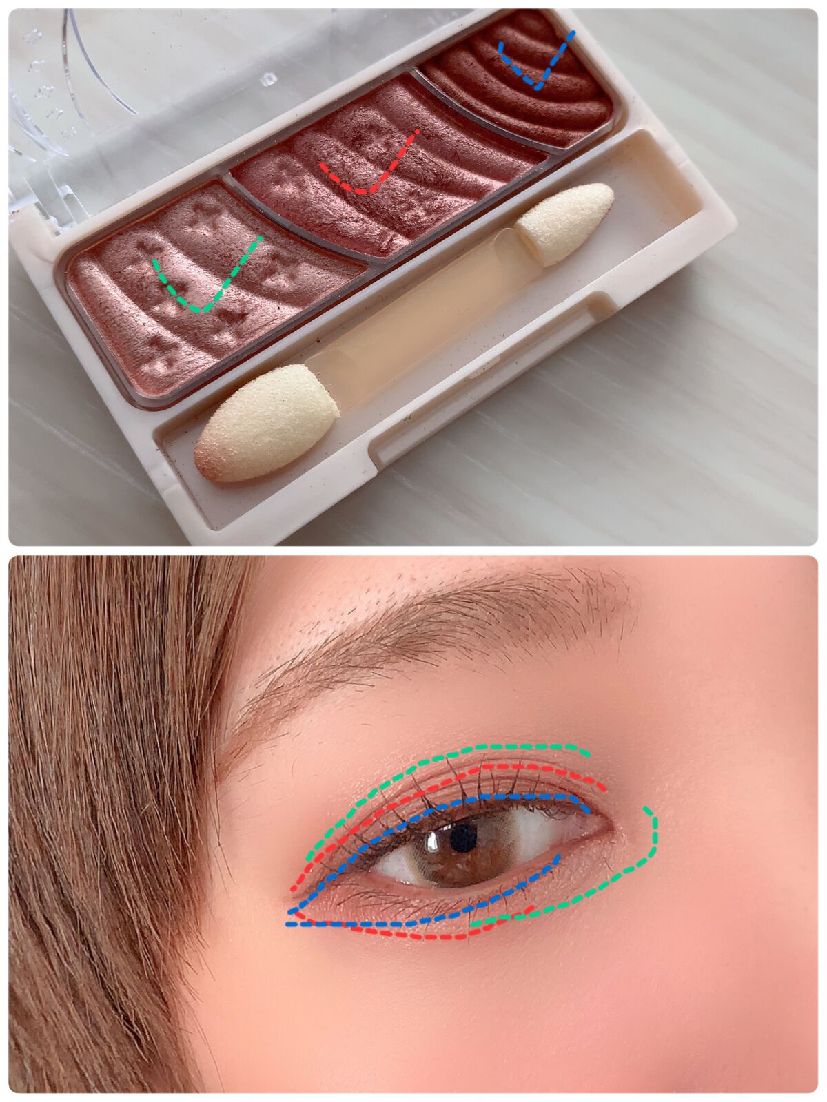 - 3色で簡単に明るく大きな目元に。 しっとり感触のアイシャドウ。 くすみを飛ばす明るさベース、ひとえ・奥二重の方でも幅広く塗れる肌なじみの良い中間色、 濃密高発色の締め色が目の輪郭を強調し大きな目元に。 微細パール配合でくすみを飛ばし、明るい目元へ。