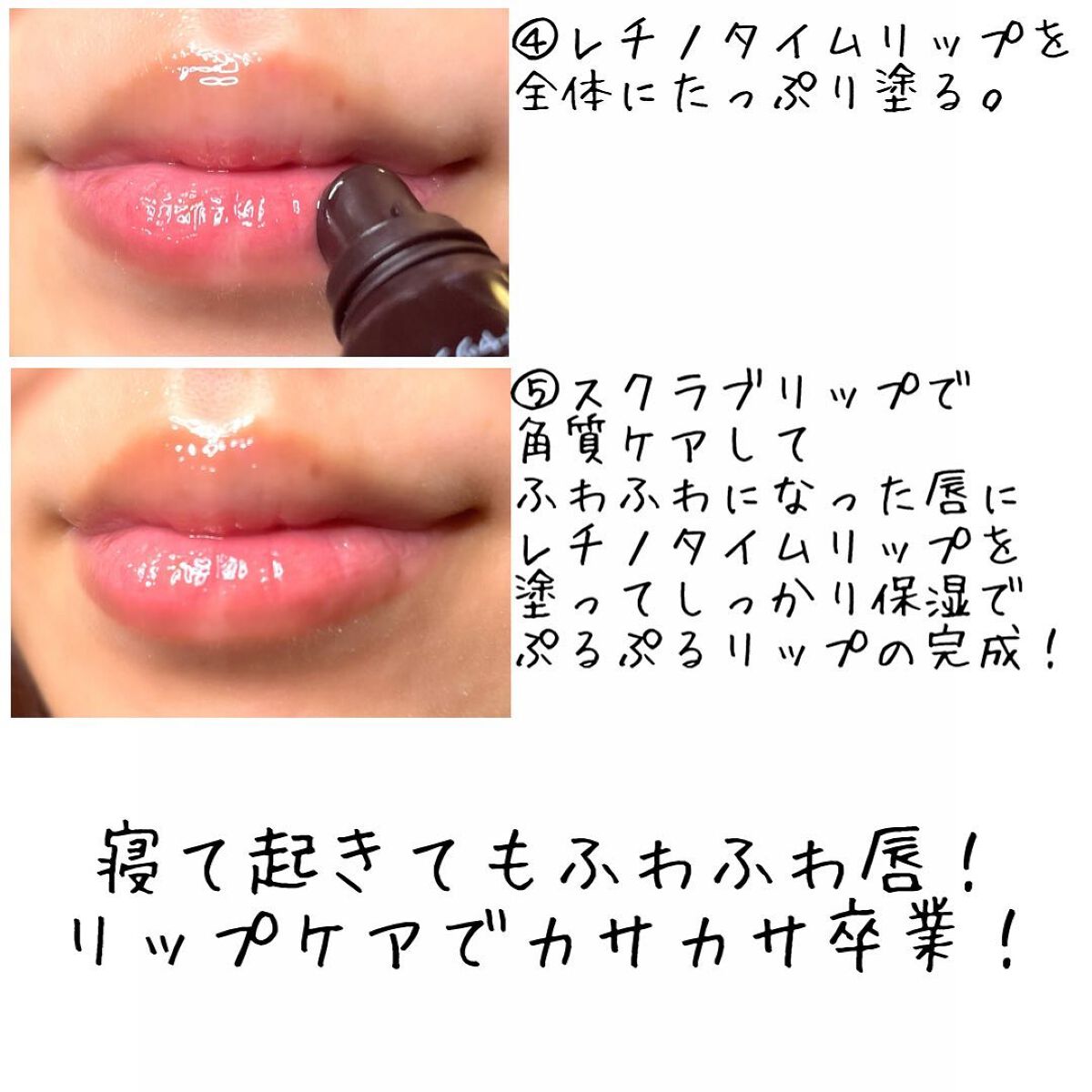 放置してたら切れて痛いし 皮が向けて口紅も綺麗に塗れないしで 見た目も良くない… 寝る前にしっかりと保湿しましょう💋+゚ 寝起きでもふっくらふわふわの モテ唇に大変身♡