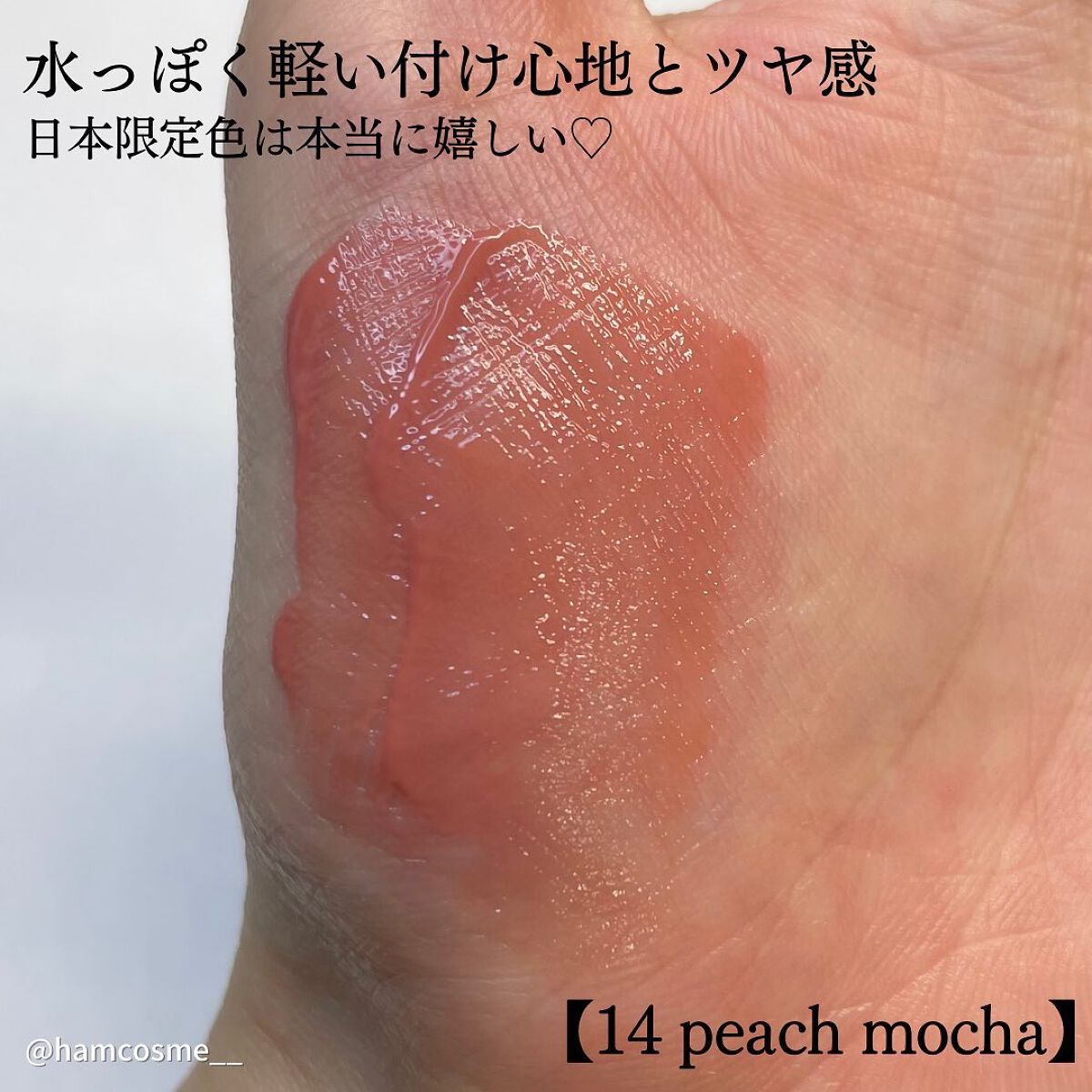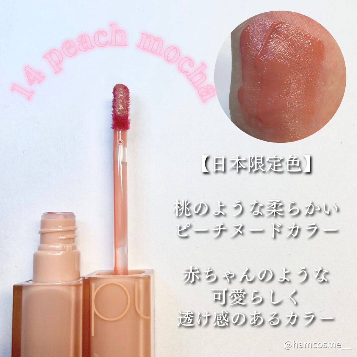 上品で抜け感のあるピーチヌードカラー🍑 塗った瞬間から可愛い🤤ふわふわした淡い発色で、桃のような甘くて柔らかいヌードカラーが本来の唇の色に馴染みぷるっと透け感のある仕上がりに🫧 少しくすみも感じられる、可愛いカラーです☺︎ ぜひチェックしてみてね💫