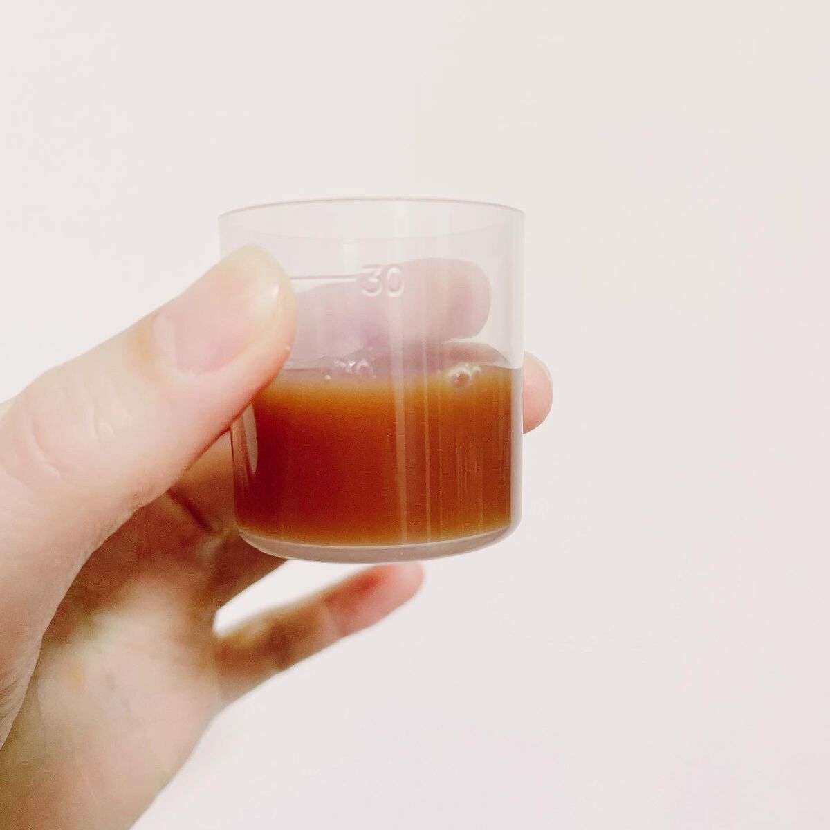 すらっとしたボトルで持ちやすい。20mlを2~5倍に薄めていただくとのこと。希釈タイプなので楽しみ方も様々。 まずはシンプルに水で割っていただく。中身は濃いシロップ状なのでほんのりとろり。くすみピンクのような可愛い色をした中身。 ふわっとフル...