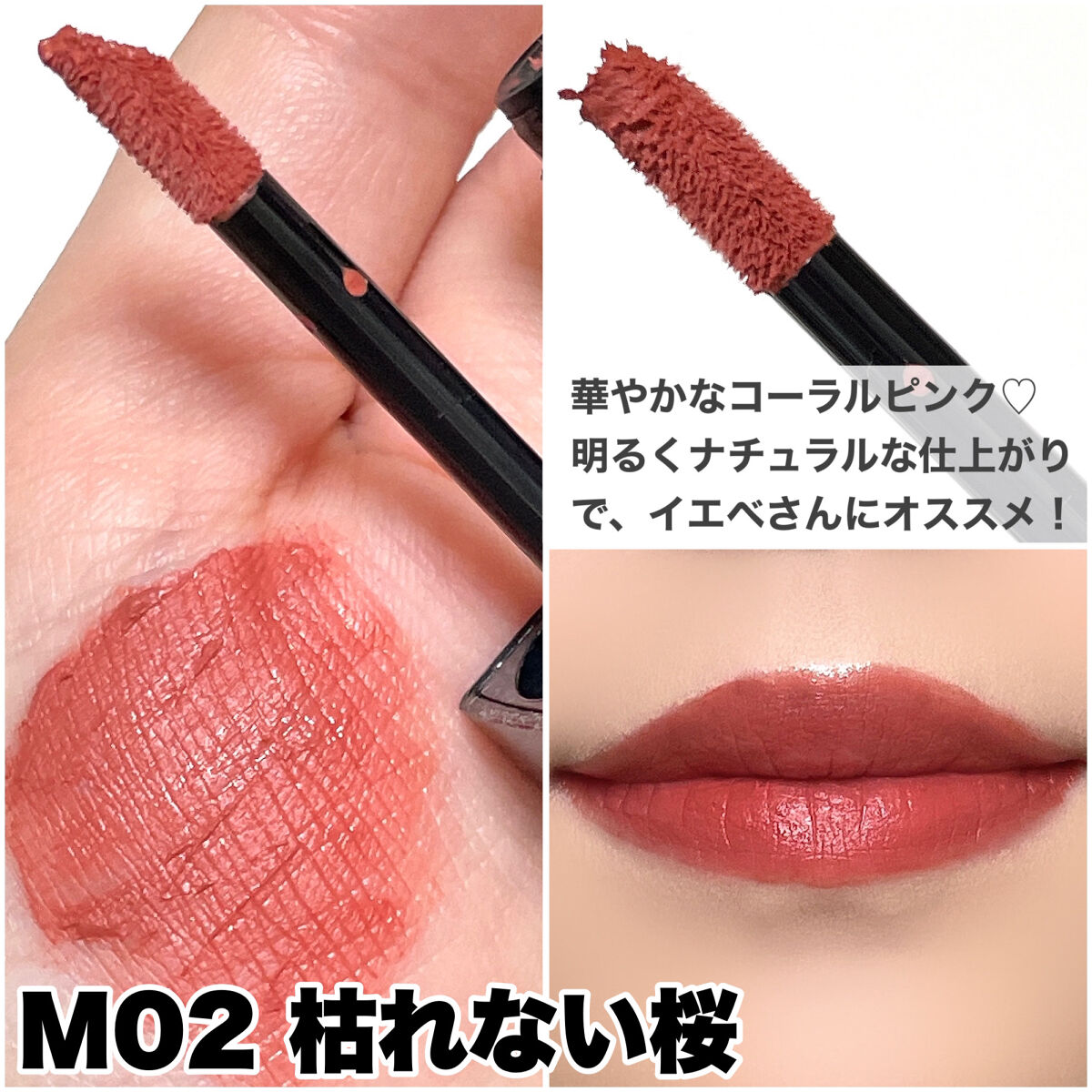 マスクに付きにくくて、食事の後でもなかなか落ちにくい『ティントタイプ』の口紅です💄✨ スルスルと塗りやすくて、艶があり高発色なカラーです✨ 一度塗りでも発色が良く、ティッシュオフしてもしっかり色づいているのでなかなか落ちにくいです⭐️ EX-1コントロールベースでくすみ補正ができるので、唇のくすみ補正や、可愛いのになかなか使いこなせないリップの下地に使うのもオススメですよ✨