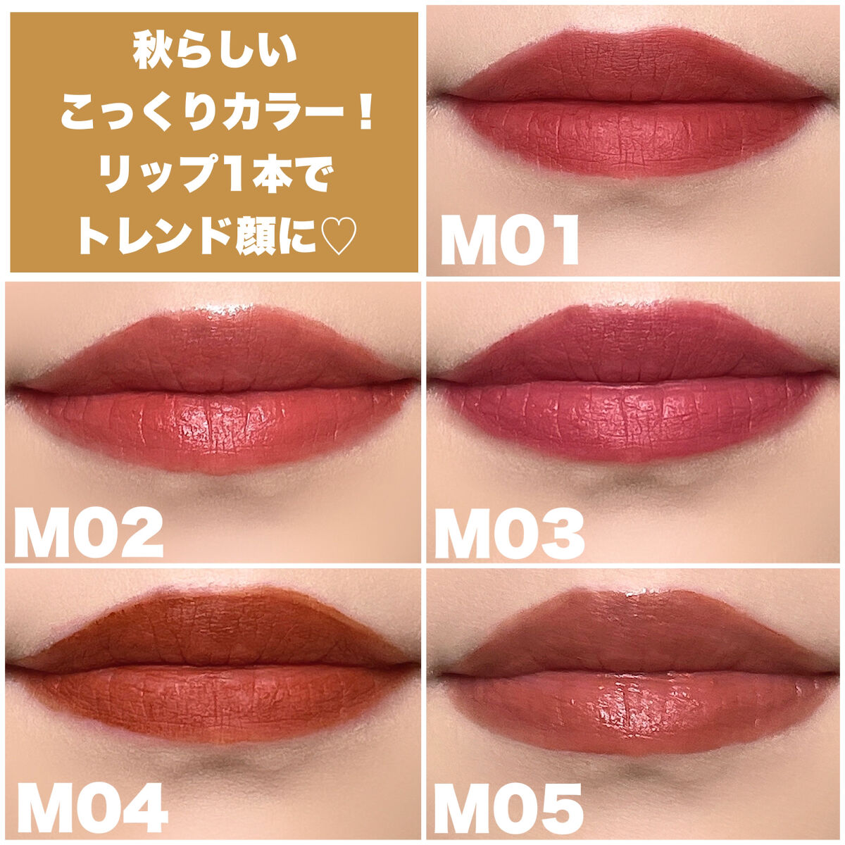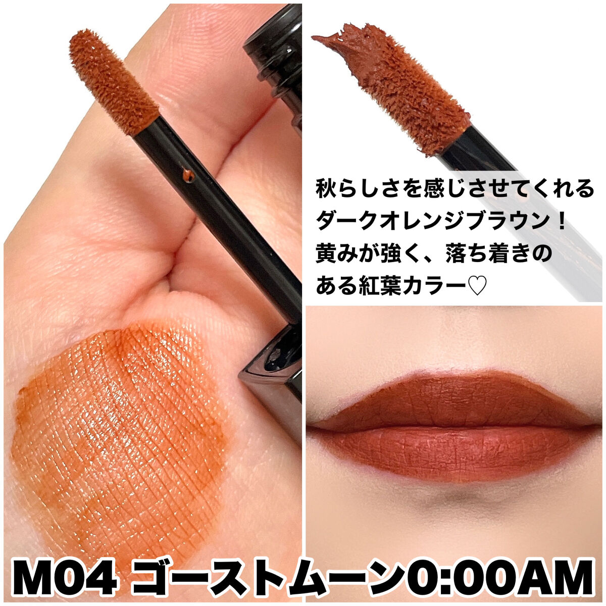 既存のリップモンスターはツヤ仕上がりでしたが、新しく登場する「スフレマット」はサラッとしたテクスチャーで、ふんわりマットな仕上がりです♡ 落ちにくくて、マスクに付きにくいのは既存のリップモンスターと同じ✨ 既存品と違うのは、深みのある濃密な発色。そして、指で簡単にぼかせるということ! 秋らしいこっくりカラーで、トレンド感のあるメイクが簡単にできるのも魅力的です⭐️