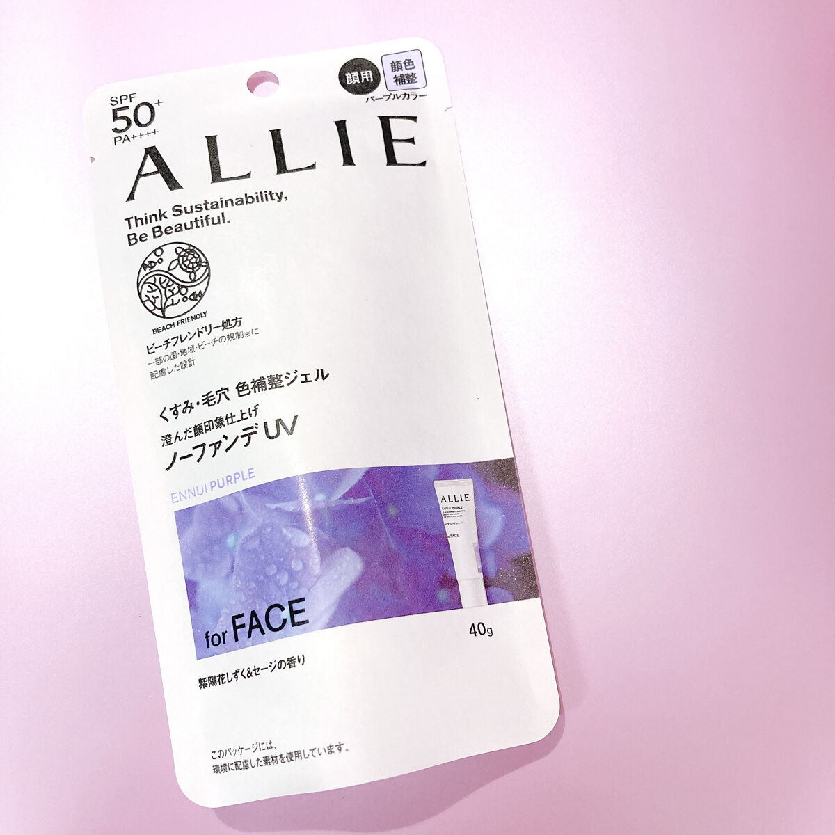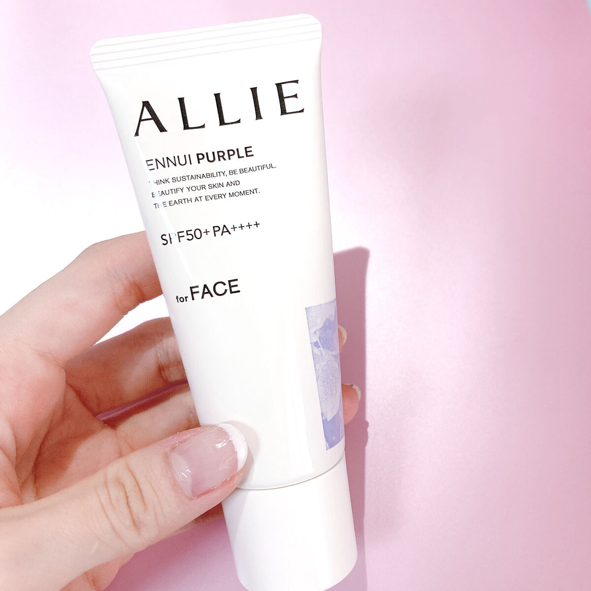 - 世界を想う 美しさつづく*1 日やけ止め おでかけも、マスクを外す機会も増える毎日に。 一部の国・地域・ビーチの規制に配慮した設計のビーチフレンドリー処方。 これ 1 本で、UV カット&顔色補整効果でクマ・くすみ・色ムラまでカバー! テカりにくく、くずれにくいノーファンデ UV*2 【ENNUI PURPLE】 くすみや毛穴をカバー 儚げな透明感のある顔印象続く 澄んだ気分を誘う 紫陽花しずく&セージの香り 【SUNNY APRICOT】 クマや毛穴をカバー いきいきとした血色感のある顔印象つづく 思わず出かけたくなる アプリコット&金木犀の香り 【SHERR BEIGE】 色ムラや毛穴をカバー 均一で抜け感のある顔印象つづく 自然で飾らない シトラスウッディ&パチュリの香り ●一部の国・地域・ビーチの規制に配慮した設計の「ビーチフレンドリー処方」 ●SPF50+・PA++++ ●汗・水 こすれに強く落ちにくい フリクションプルーフ・スーパーウォータープルーフ ●ベタつきにくい感触がつづく ●テカりにくくキレイな肌仕上がりがつづく ●環境に配慮した素材を使用したパッケージ採用 ●美容液成分(保湿)ヒアルロン酸Na配合 ●顔用 ●普段のメイククレンジングで落とせる ●マスク・タオル等につきにくい ●化粧下地効果 *1 スキンケア効果またはメイクアップ効果による肌仕上がりのこと *2 ファンデーション未使用時でも、自然なベースメイクが仕上がる日やけ止めのこと *3 チリ・ほこり・PM2.5・花粉等すべての微粒子汚れの付着を防ぐわけではありません 01:ENNUI PURPLE パープル 02:SUNNY APRICOT アプリコットピンク 03:SHEER BEIGE ミルキーベージュ