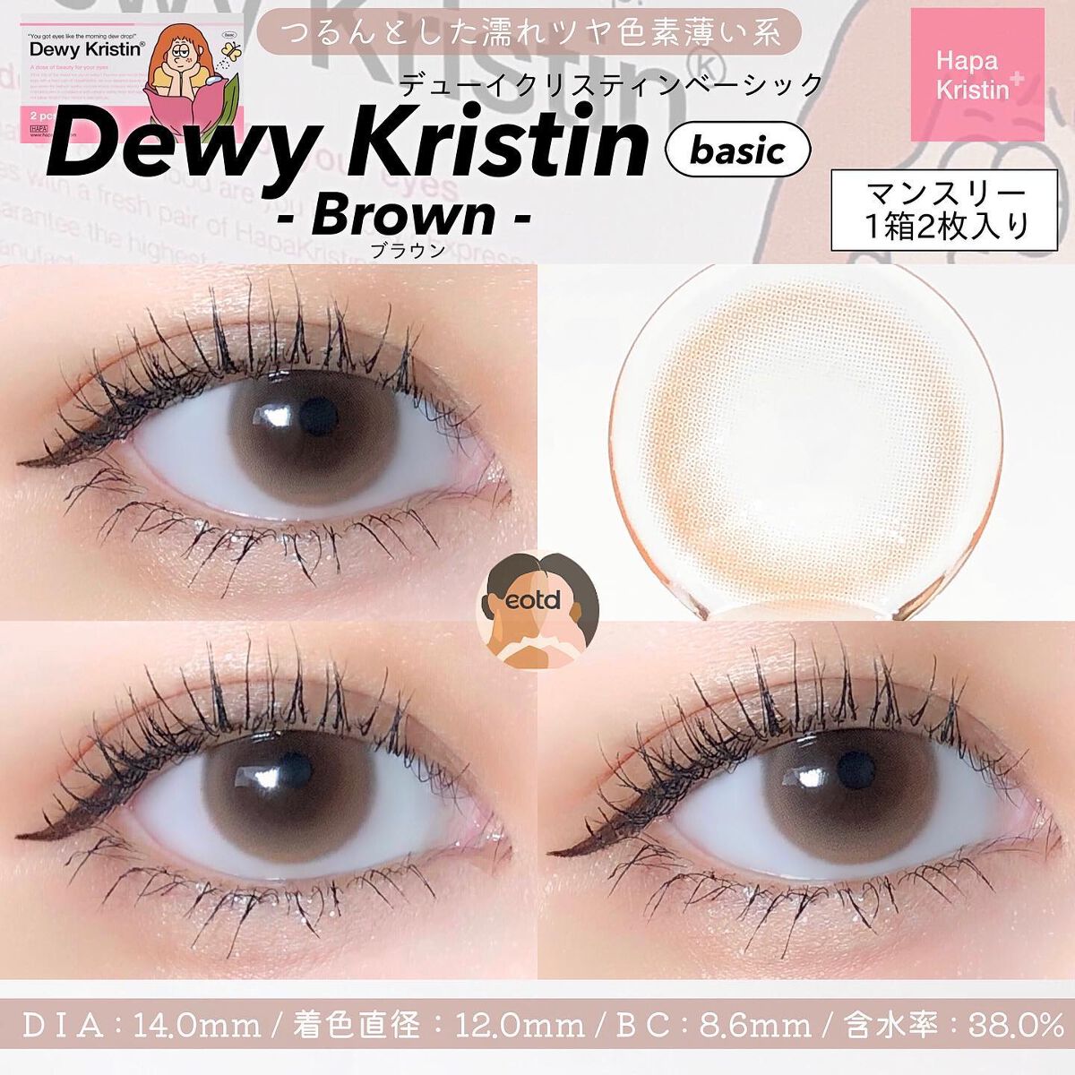 〘[1Day/ブラウン]DewyKristinBROWN デューイ・クリスティン(1箱10枚)〙ナチュラルに盛れる朝露のようなグラフィック✨●商品名→DewyKristinBROWN●メーカー→Hapakristin(ハパクリスティン)●CO...