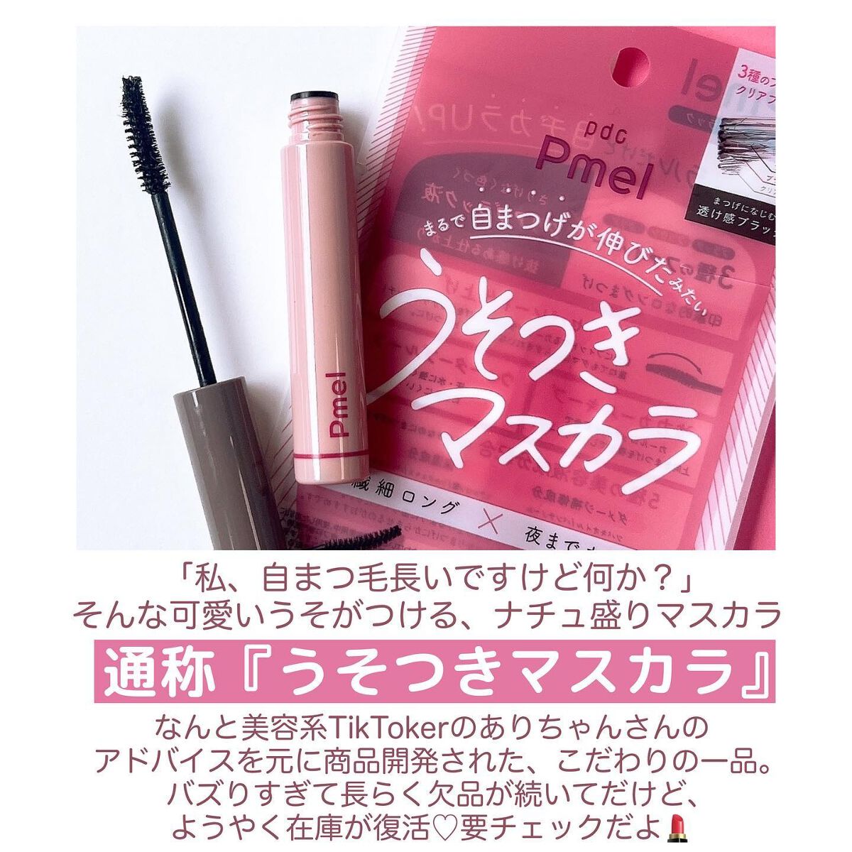 - "さっと仕込んで 私らしさ引き出す ピメルではじける あなただけの魅力"。 繊細ロング×長時間カール、まるで自まつげが伸びたみたい!"うそつきマスカラ"。 さっとひと塗りで、ナチュラルだけど目ヂカラUPを演出するまつげになじむ「透け感ブラック」。 肌馴染みが良くさらに軽やかな「透け感ブラウン」。 大人可愛い限定色「透け感モーヴピンク」。 印象的でおしゃれな限定色「透け感ナイトグリーン」。 重ねてもダマになりにくいセパレート仕上げでしっかりカールキープ。 綺麗なまつげが続く、ウォータープルーフ。