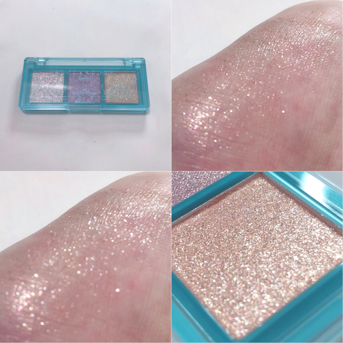 透明感溢れる人魚姫コスメたちを紹介します 海に眠る宝石のように煌めく淡いブルーのラメ入りリップグロスです 透明感のあるブルーのリップグロスに青みピンクラメと青ラメがたっぷり入っていて、アクアマリンのようにきらきら煌めいてくれます 紫色のリップバームだと思っていたんですけど淡い透明感のある青いリップバームでアクアマリンのような色味でした ベースが水色のグロスなんですけど塗るとほとんど色はつきません 繊細な青や赤のラメが入っていて星のように煌めいて唇に立体感を出してくれます 水面のような煌めきがとってもかわいい青ラメグリッターです アクアマリンのような青い煌きがとにかくかわいいグリッターで、泣いているかのような潤んだ瞳を作れちゃいます 氷のような涼しげな透明感のあるグリッターです うるうるとした儚げな瞳になれちゃうグリッターでとってもかわいいんです 爽やかで涼しげな水色のグリッターで、いろいろな大きさのラメがぎっしり詰まっています