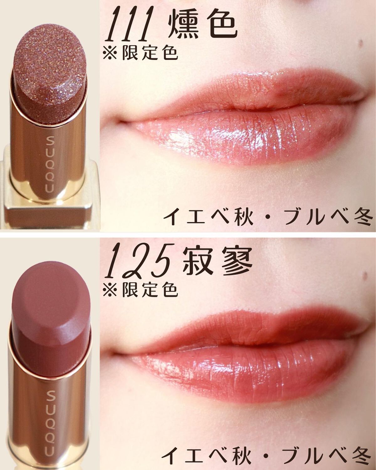 Elégance ルージュ クラジュール04 エキゾチックで上品なイエローベージュ ゴールドラメがチラチラして可愛い。 SUQQU モイスチャー グレイズ リップスティック 105 保湿力も良くてナチュラルにもお出かけにも使いやすくて、もう半分以上使ってる🤭 このリップの上から透け感のあるリップを使うとブラウンみとラメが透けてめちゃ可愛かった🥰