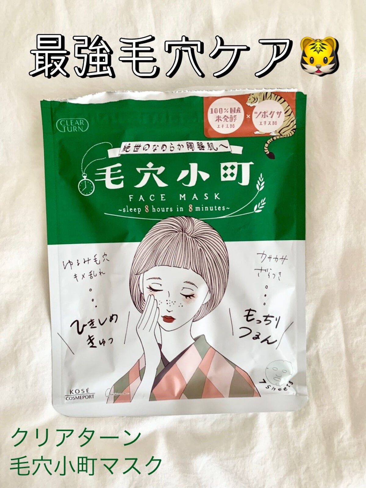 - 毛穴・肌あれが同時にケアできる、毛穴小町マスク! ①毛穴目立ち&肌あれをダブルでケア!なめらか陶器肌へ 水分・油分をバランスよく配合したみずみずしい美容液で、乾燥や皮脂による毛穴目立ちやあれ肌もケアします。キメのととのった、つるんとなめらかな陶器肌に導きます。 角質柔軟成分※3配合。肌をやわらげます。 100%国産米発酵エキス・米ぬかエキス・BG(保湿)をはじめとする発酵ライスモイスチャーCPX配合。ふっくらと保湿します。 ツボクサエキス・ドクダミエキス・BG(保湿)配合。ツボクサエキスは今話題のCICA成分です。肌をひきしめととのえます。 ※3 角質柔軟成分はリンゴ酸 ②角質ケアできる凸凹高密着シート コットン生まれでやわらかな肌触りの国産シートを採用。シートマスクの表面には凸凹のエンボス加工を施しているため、密着性が高く、はがしたマスクでやさしく顔をふきとることで角質ケアもできます。 ③心地よい眠りにみちびくようなリラックスフローラルの香り(天然香料配合) ④やさしい使い心地 弱酸性・無着色・無鉱物油・パラベンフリー・紫外線吸収剤フリー・シリコーンフリーのやさしい使い心地です。
