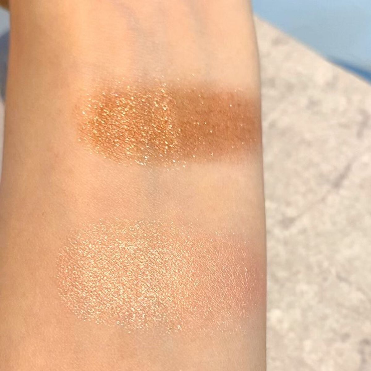 うん、やっぱ可愛い!♡ 神配色👏🏻 今の時期より夏に登場頻度増えそう🙌 ギラギラゴールドがタイプすぎる♡ 左:イエローゴールドシマー ⇒コッパーとゴールドのラメがたっぷり! 大粒ラメがギラギラ夏っぽい 右:シマリングライトピーチ ⇒発色は薄いもののベースや涙袋にだ活躍してくれる ピンクベージュ 左:オレンジ&ゴールデンシマー ⇒ありそうでなかったオレンジカラー オレンジからのゴールドの偏光がたまらない🍊 右:マットパープルレッド ⇒かなり濃いめのパープル!オレンジメイクにアクセントと深みを出してくれる
