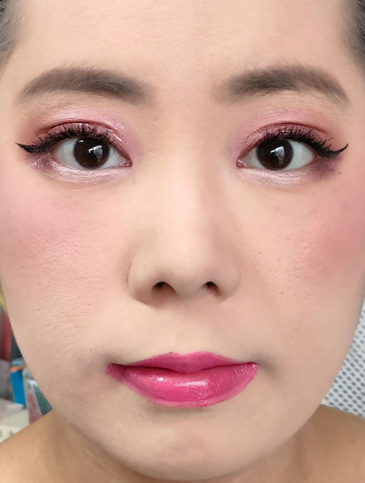 アイシャドウパレットは、UR GLAM アイシャドウパレットを、使用しました。 リップは、M・A・C リップスティック ピーチストックを、唇全体にまんべんなく塗ります。