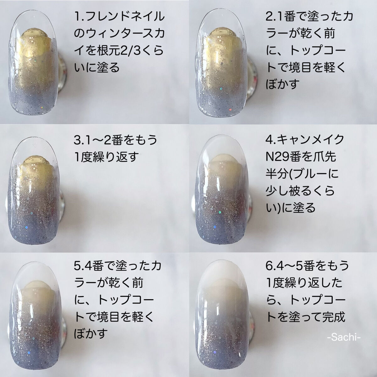 こんにちわ♡今回はキャンメイクのマニキュア2色で出来る、簡単グラデネイルのご紹介です💕先端にかけて白くなるベイビーブーマーは、美爪に見えるのでグラデの中でもとても人気デザインですよね(*´꒳`*)やり方は画像を参考にしていただければと思います...