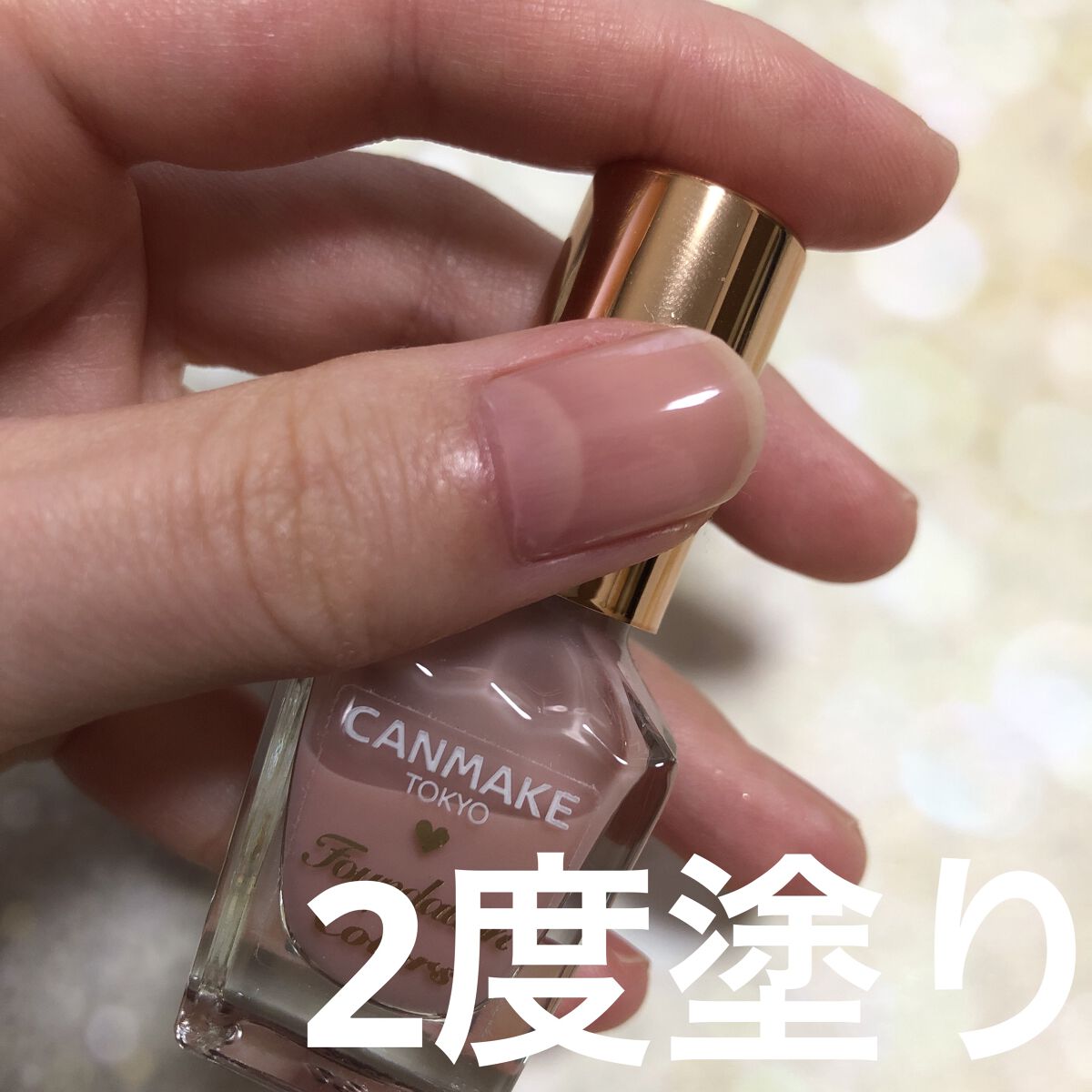 396円でケアしながら垢抜け美爪完成💅🏻✨ キャンメイクファンデーションカラーズ 1度塗りから3度塗りまで徹底スウォッチ♡ ファンデーションカラーズはベースコート不要で保湿成分配合🙌🏻 爪の凸凹や色むらをカバーしてくれ時短にも👌🏻 1度塗りでほんのり色づき 2度塗りでナチュラルな発色 3度塗りでしっかりボトルカラーの発色!