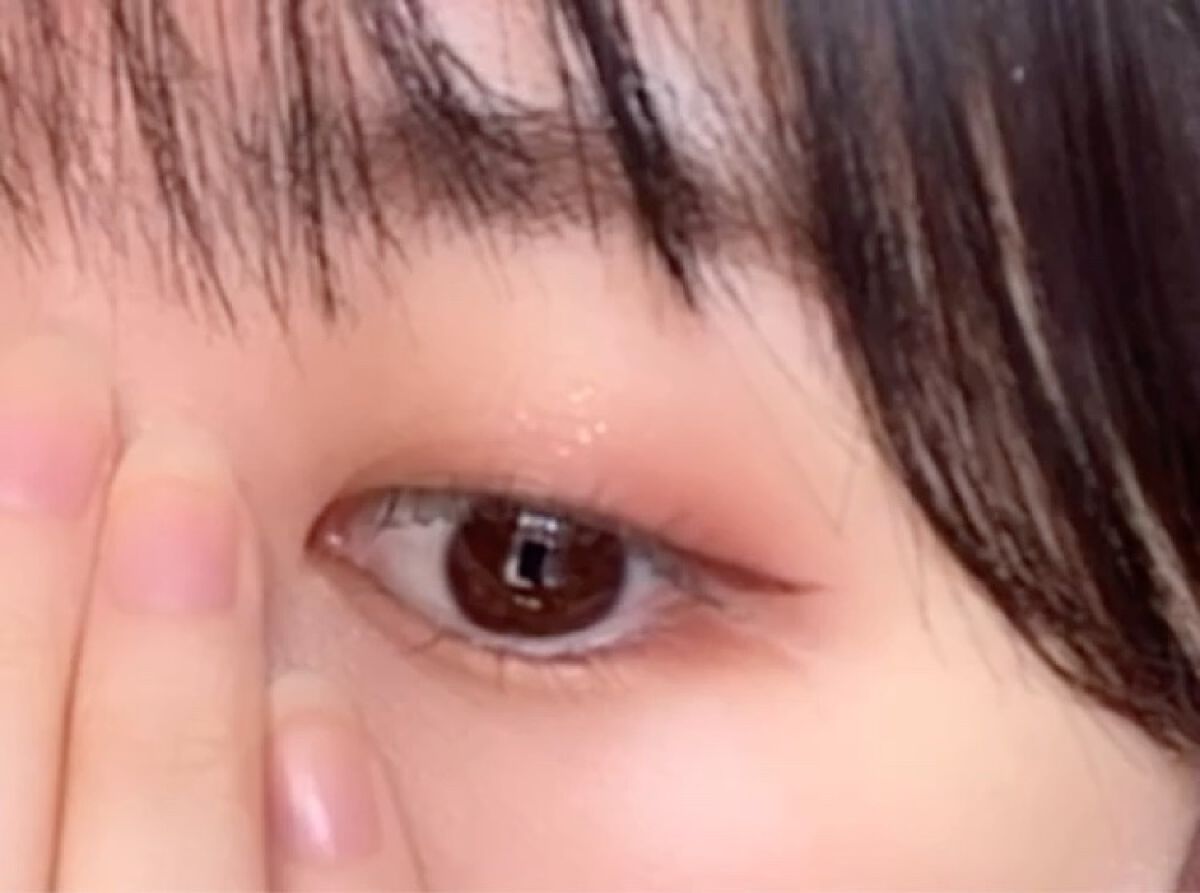 私はまぶたが厚いので最初からまぶたを上げると、せっかく引いたラインがまぶたに隠れてしまいます。 まぶたを上げたまま足し続けても、(私の場合)結局隠れてしまったり、正面から見たときに不自然になったりするので、そのままの状態で微調整するのが一番手っ取り早いと思います◎ 私は目尻側だけにしておきたいので、内側にいくにつれてラインを細くし、まつ毛の生え際になじませていきます!