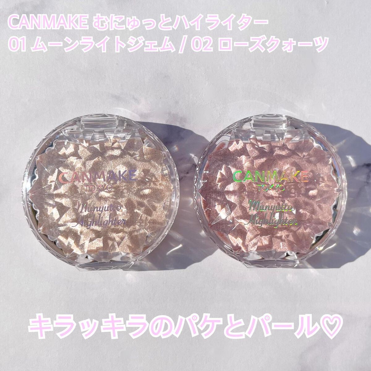 \むにゅっとシリーズ4色スウォッチ!どの艶めきが好き?/プチプラコスメのハイライトといえばの代表格といえば、むにゅっと生質感が特徴の"CANMAKEむにゅっとハイライター"💁♀️カラーによってそれぞれ違った艶めきと輝きがあり綺麗✨【CANM...