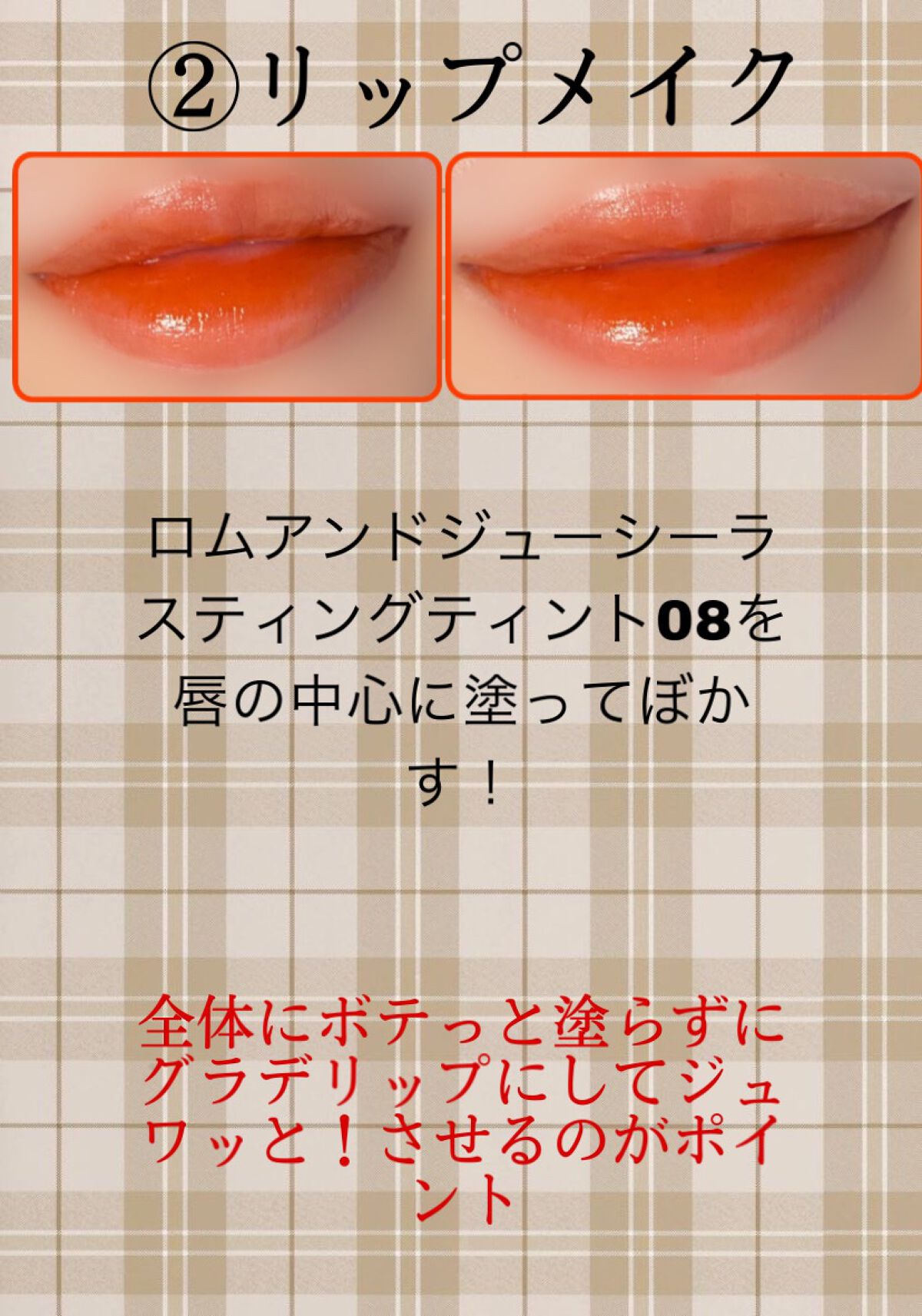 アンニョン(^^)/ひかりです!今回はオレンジメイクに最適なオレンジティントを紹介します!《商品名》rom&ndジューシーラスティングティント#08APPLEBROWN👍良いところ👍・色持ちがものすごく良い。・マット好きな人も使いやすい保湿力...