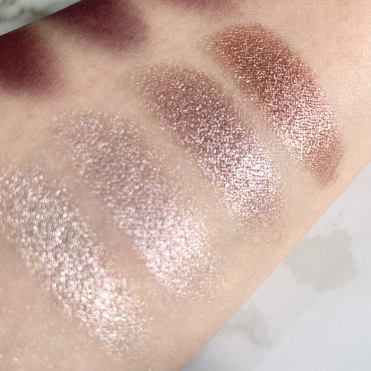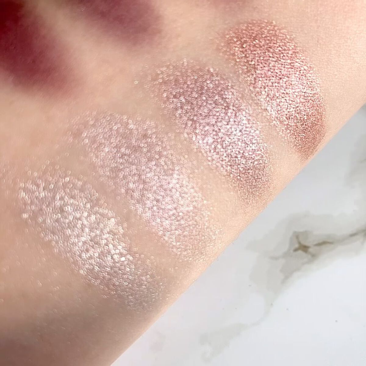 シルキースフレアイズ好きな私からしたら超気になるアイテム😍 どのカラーも左上のみラメとパール配合❣️ マットも"透け"マットなだけあって本当に透け感あってマットになりすぎずとても使いやすそう|ω・)و ̑̑༉💕