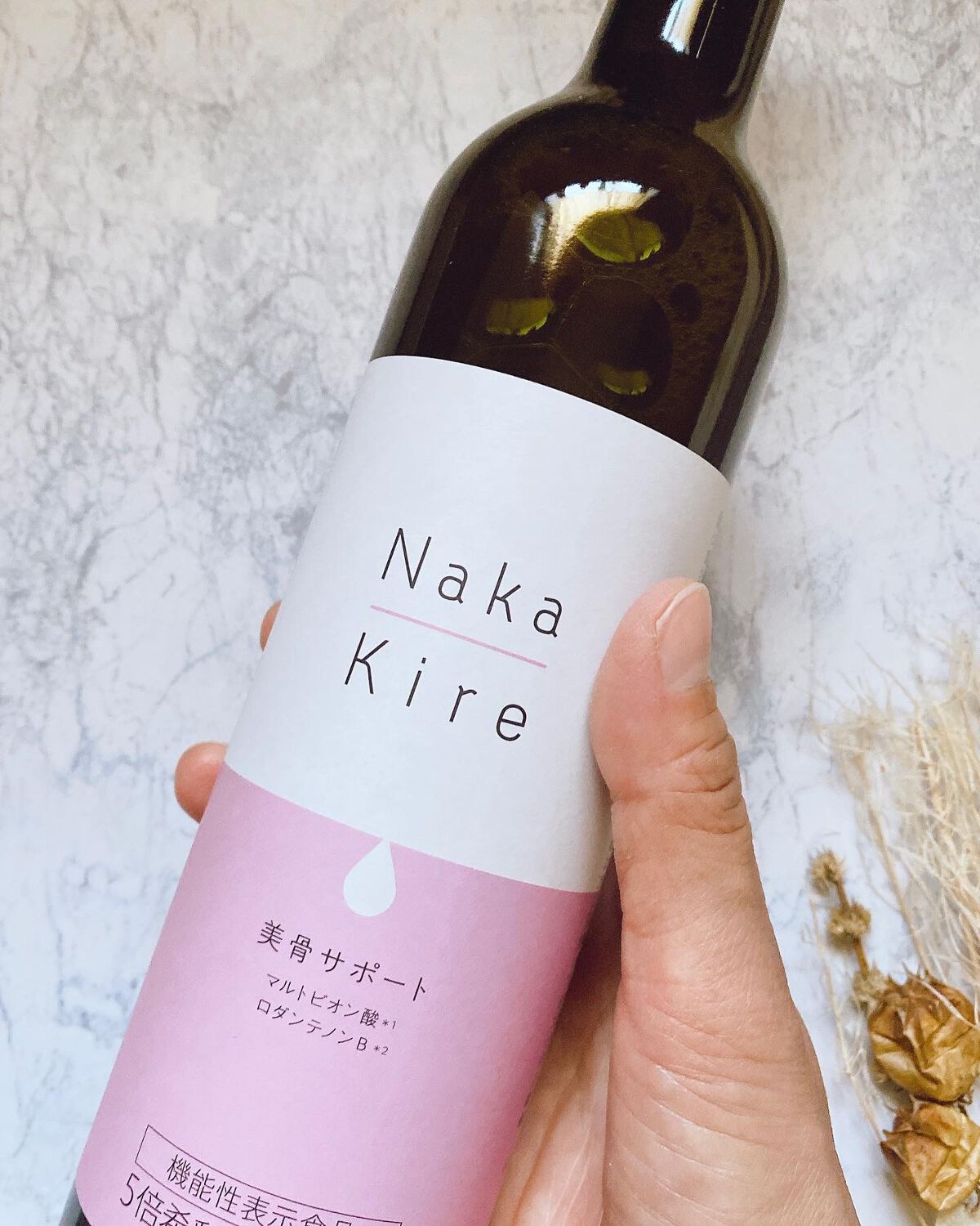 Naka Kireは、お腹の調子を整えるマルトビオン酸(オリゴ糖酸Ca)と、肌のうるおいをキープするロダンテノンB(マンゴスチンエキス末)配合で、からだのNakaから、Kireいをサポートし、糖化ストレスを受けたカラダへアプローチする美容ドリンクです。 そのほか、ざくろ果汁、エクオール酸生産乳酸菌、イソフラボン、海洋ミネラル、マリンコラーゲン、ヒアルロン酸といった女性に嬉しい成分ばかり😃 ワインボトルのようで、見た目もおしゃれですよね〜👏🏽👏🏽 希釈タイプなので、アレンジが豊富なのもポイント!今回は、炭酸水で割ってみました。メモリがついている容器が入っているので、目安がわかりやすいです。ヨーグルトやアイスクリームにかけるのもいいですね😉 テイストは薄めで、フルーティな感じです。とにかく飲みやすいです。お肌も骨もと考えると、いろいろとらなければいけないですが、これがあれば1本で両方ケアできるのは嬉しいですよね🥹