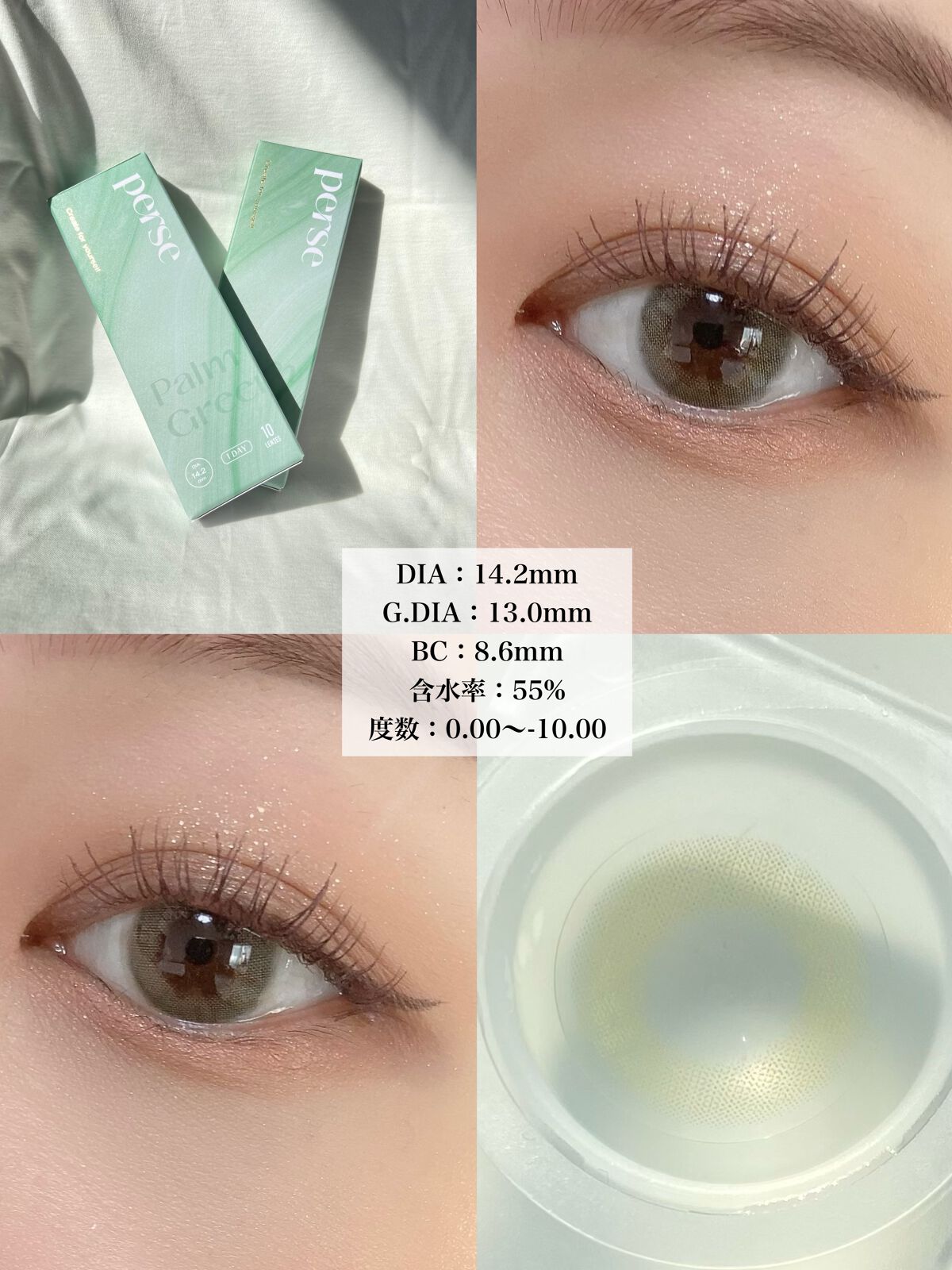 perse˚✦クリーンな雰囲気で澄んだ瞳ナチュラルハーフカラコン˖࣪⊹✔︎perse#パース¥1,705[リリーアンナ公式価格]✧PalmGreen#パームグリーン[DIA14.2|G.DIA13.0|B.C8.6|Water55%|1day...