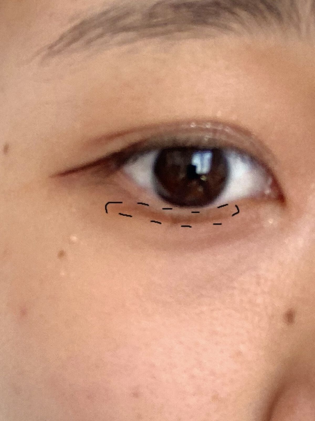 先に引くのが目を大きく見せるpoint! 一重、奥二重の人は目の際に塗って目をつぶった時、下を向いた時に見えるぐらいでも可愛いからそれでok 右下の濃い色を目の下に入れます! 上の段の右から2個目のピンクを涙袋に塗る マスカラをする。ここでアイラインが禿げていたからもう一度ひく