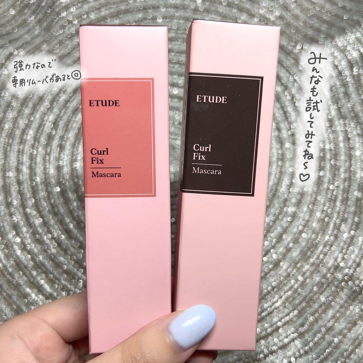 上向き束感まつ毛がつくれるカールフィックスマスカラにボリュームタイプ♬ 目のカーブに合う小さめブラシで細かい毛もキャッチして液づきもしっかり🙆♀️ 涙目になりやすいから、にじみにくいのって嬉しい🥰
