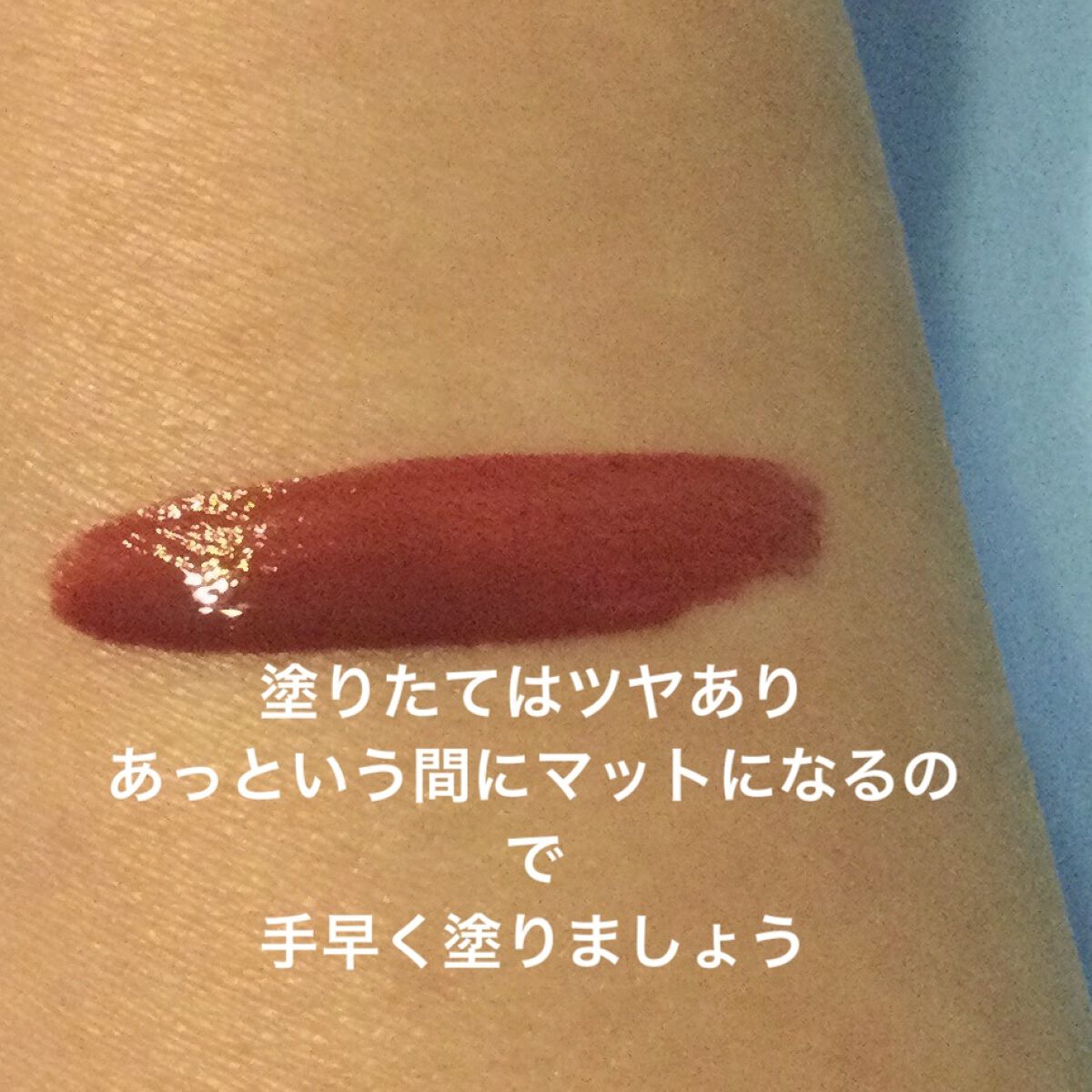 塗りたてはツヤ系、時間経過でマットっぽくなるティントリップ。塗ってすぐティッシュオフでも色がしっかりついたままマットっぽくなります。 数回使用しましたが今の所唇の皮剥けがなく快適です。