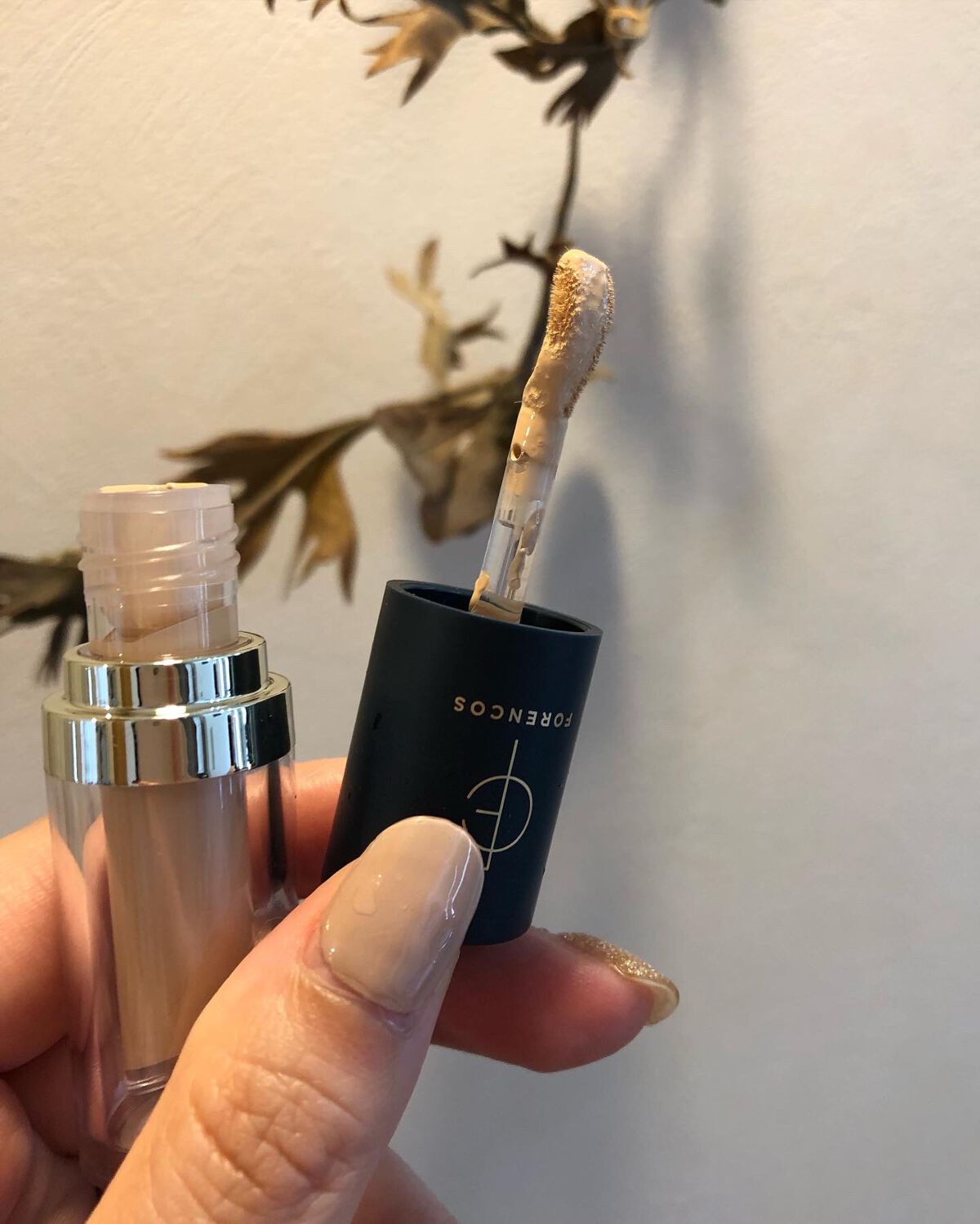 フォレンコスの代名詞ともいえるコンシーラー🤍 噂は勿論知っていましたが実際に使ってみて色々と驚くことが盛りだくさんでした😂😂💕 塗ってみてすぐの直感がすぐにぴたりと密着されるということでした!指で擦ってみてもなかなか剥がれたりよれたりすることがなかったのでメイク直しも基本的に不要な印象☝️ そして何よりもカバー力が凄まじい…大きめの吹き出物ができてしまった時でも安心できるくらいに綺麗にカバーできました◎