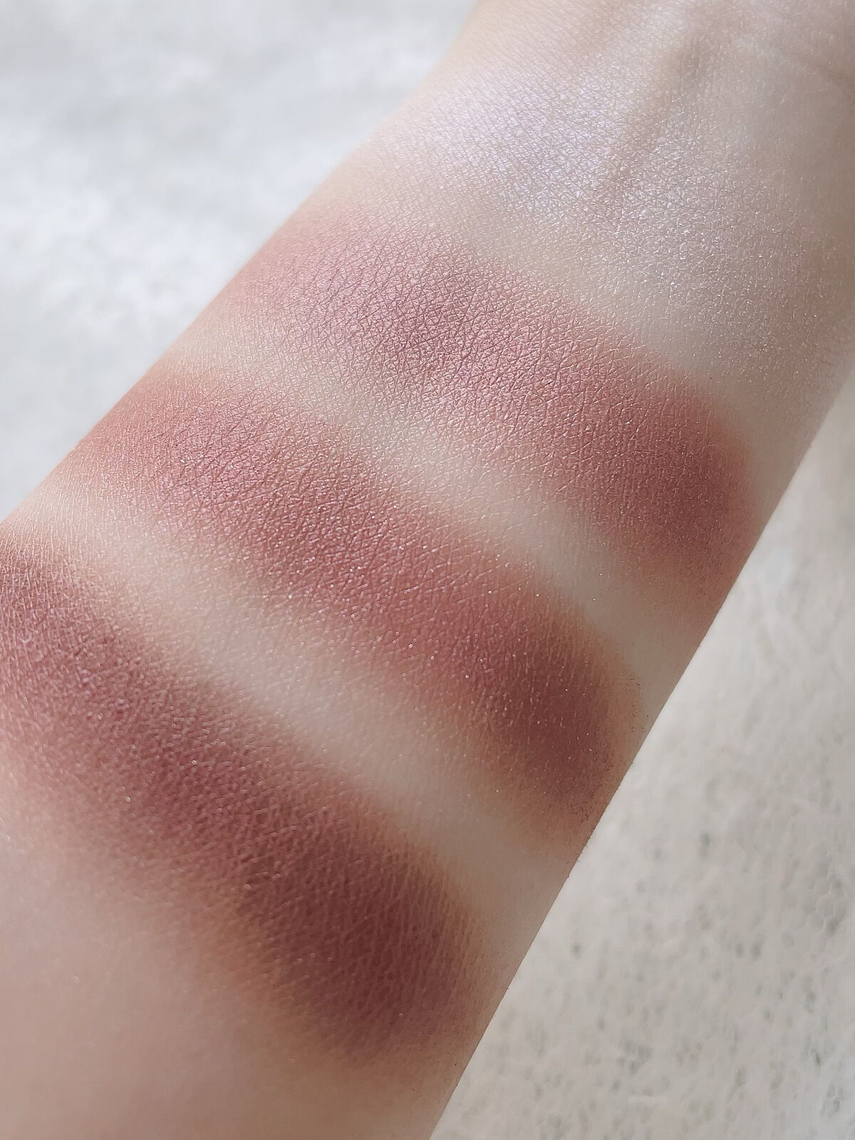このピオニーブラウン、 ぱっと見はすごく紫っぽくて ピンク感、パープル感が強いので 目元が腫れぼったくならないかな?とか思ったり ブルベしか使えないように見えたんですよね。 でも実際使うとモーヴ感が絶妙で イエベでも違和感なく使える すごく使いやすいカラーでした。 テクスチャーはしっとりしていて ほんとに何度使ってもすごいなと感じる プチプラとは思えない粉質。 粉とびも全然しないし とにかくすごくしっとりと仕上がります。 そして気になるカラーですが 名前の通りブラウン+モーヴのような印象。 モーヴ感もしっかり感じられるけど ブラウンみもあるので肌馴染みも良くて まさに“いいとこ取り”な色味です。 イエベでも使えるモーヴだし 逆に言うとブルベでも使えるブラウン。 この配色最強じゃないですか?(笑)