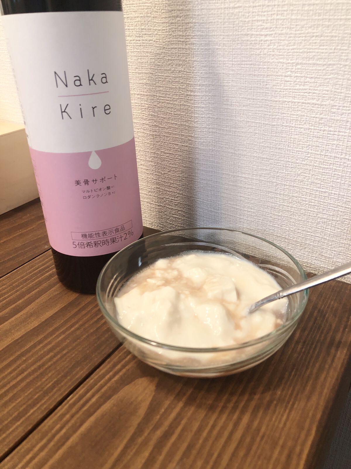 Naka Kireは、お腹の調子を整えるマルトビオン酸(オリゴ糖酸Ca)と、肌のうるおいをキープするロダンテノンB(マンゴスチンエキス末)配合で、からだのNakaから、Kireいをサポートし、糖化ストレスを受けたカラダへアプローチする美容ドリンクです。 そのほか、ざくろ果汁、エクオール酸生産乳酸菌、イソフラボン、海洋ミネラル、マリンコラーゲン、ヒアルロン酸といった女性に嬉しい成分ばかり😃 ワインボトルのようで、見た目もおしゃれですよね〜👏🏽👏🏽 希釈タイプなので、アレンジが豊富なのもポイント!今回は、炭酸水で割ってみました。メモリがついている容器が入っているので、目安がわかりやすいです。ヨーグルトやアイスクリームにかけるのもいいですね😉 テイストは薄めで、フルーティな感じです。とにかく飲みやすいです。お肌も骨もと考えると、いろいろとらなければいけないですが、これがあれば1本で両方ケアできるのは嬉しいですよね🥹