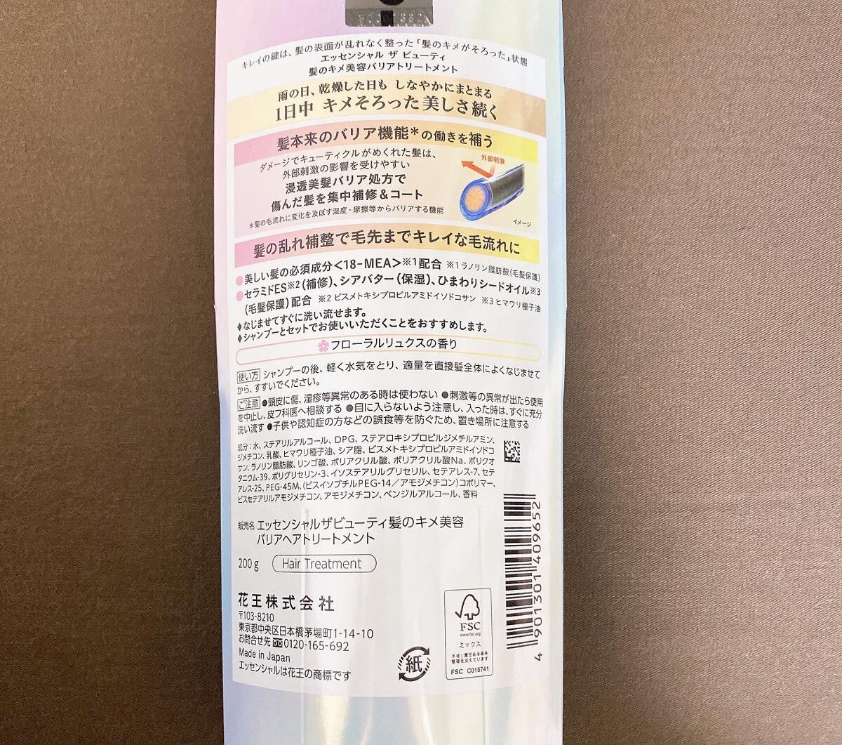 商品詳細情報エッセンシャル 髪のキメ美容バリアトリートメント