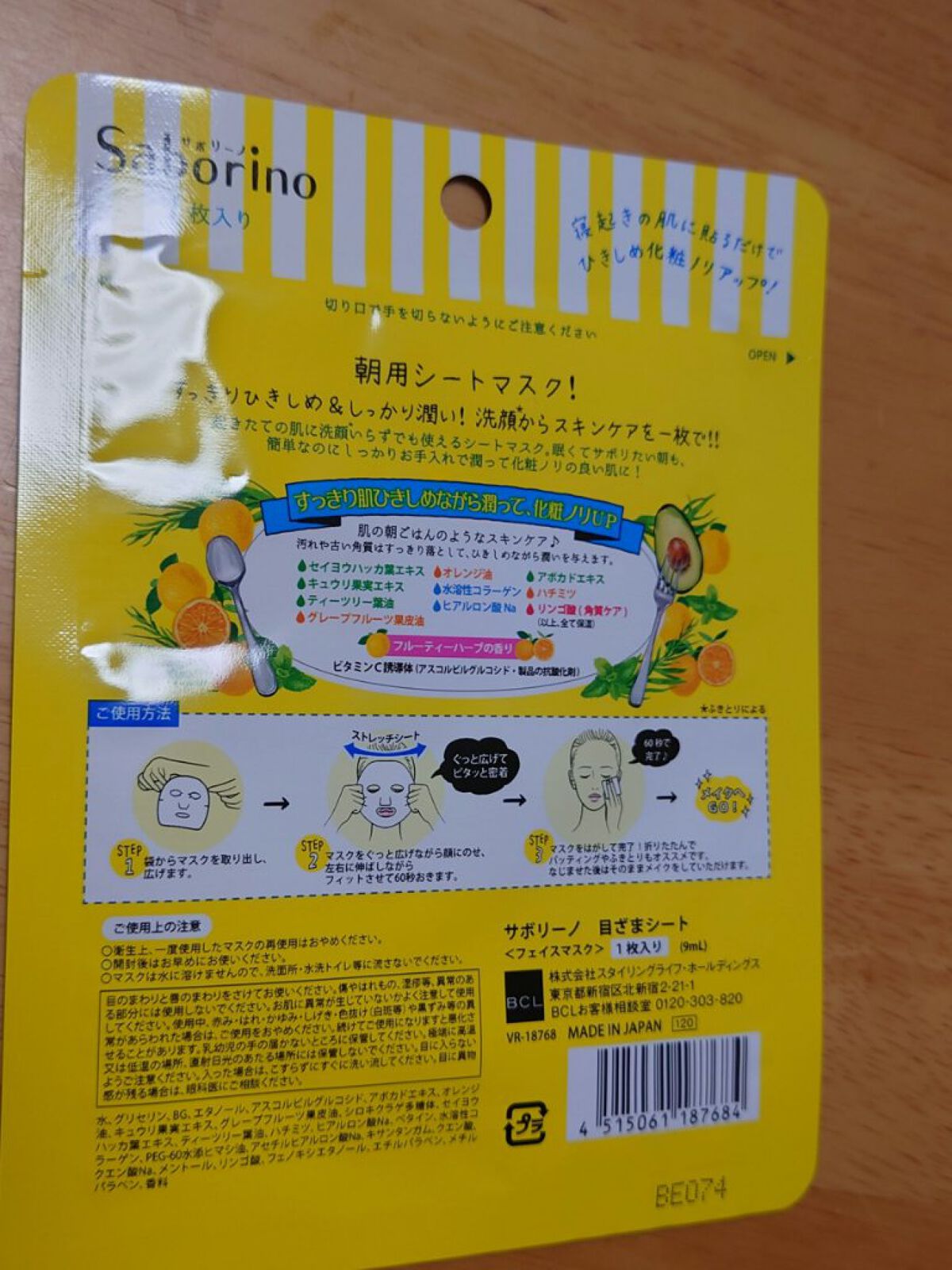- シートマスク1枚で洗顔+スキンケア+保湿下地が完了! 寝起きの肌にそのまま貼るだけで、洗顔、スキンケア、保湿下地までできる朝用のオールインワンマスクです。 保湿成分をしっかり配合しながら、程よいメントール感で、寝起きの肌をすっきり引き締めます。 グレープフルーツ果皮エキス、オレンジ油 &アボカドエキスinのしっとりタイプ フルーティハーブの香り