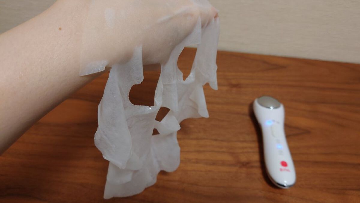 美顔器のモードは3種類⇩ クリーンモード クレンジングや洗顔で落としきれなかった汚れや古い角質を取り除きたい時に使うモード。 インポートモード イオンブースター専用のフェイスマスクに配合された成分をしっかり浸透※1させる時に使うモード。 ウォームモード マイクロカレント波(人間の体内に流れる電流と似た微弱な電流)と温感で肌を整えたい時に使うモード。 美顔器本体が想像より軽くて、ケアしながら手が疲れてしまうということもなく手軽にケアできます✨ 美容液がたっぷりでひたひたのシートマスク🤍 インポートモードで導入したあと、6分おくのですが、うっかり放置してしまっても乾いてなかったほど🫢 クリーンモードとウォームモードで日々のケア、特別な日の前にインポートモードも使用したフルコースのケアっていう使い方もいいなと思いました✨ これからも定期的に使用してキレイなお肌になれるように頑張ります🫧