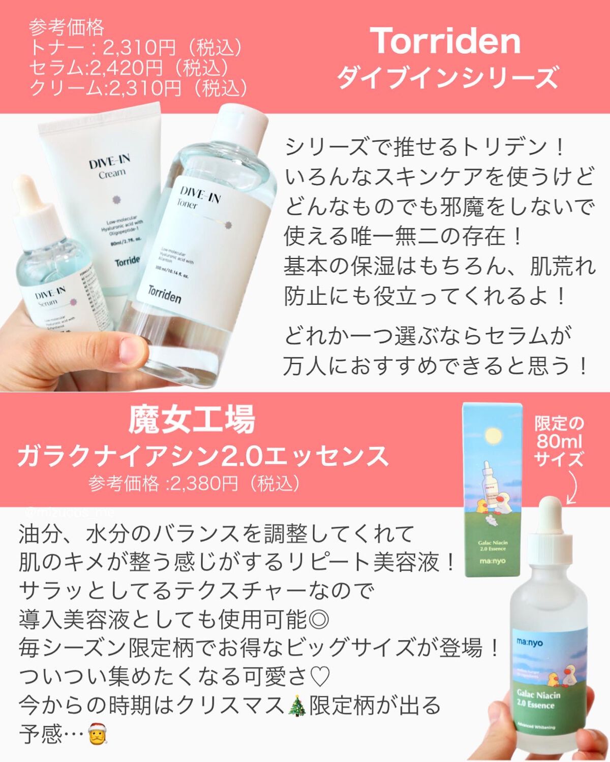 韓国現地で爆売れ、納得の実力🤍 ̖́- トリデンダイブインセラム 韓国コスメ評価アプリファヘビューティーアワード3年連続1位 水分感たっぷりで、スーッと肌に馴染んでくれて ベタつかないし、仕上がりも良い◎ ぷるんとした触り心地でヴィーガンセルロース100%だから肌あたりも良く肌にしっかり密着してくれる𖤐´-