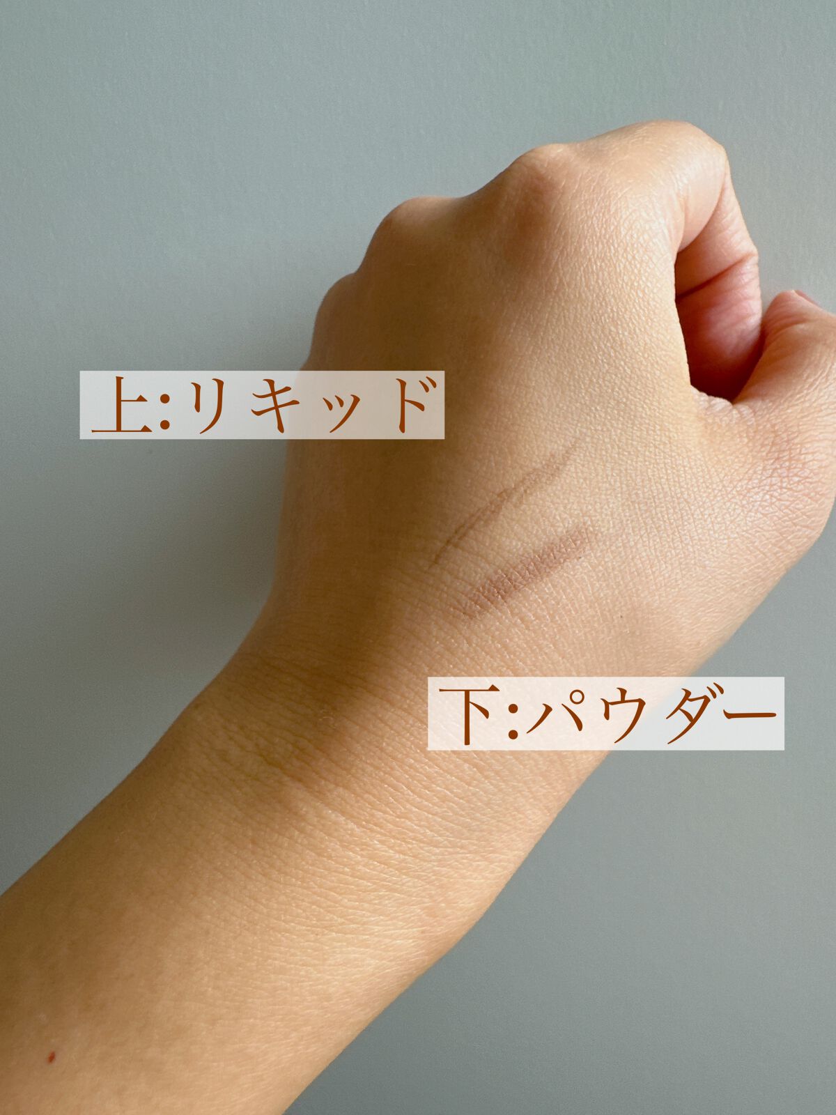 - 【全色共通】 <リキッド部> 水、 BG、 (アクリレーツ/アクリル酸エチルヘキシル)コポリマー、 エタノール、 パンテノール、 AMP、 スルホコハク酸ジエチルヘキシルNa、 ラウレス-21、 フェノキシエタノール、 メチルパラベン、 青1、 赤227、 黄4 <パウダー部> 合成金雲母、 炭酸Ca、 トリメチルシロキシケイ酸、 メチルトリメチコン、 (アクリレーツ/アクリル酸ステアリル/メタクリル酸ジメチコン)コポリマー、 ポリエチレン、 トリエチルヘキサノイン、 パンテノール、 ジメチコン、 トコフェロール、 マイカ、 酸化チタン、 酸化鉄、 水酸化Al