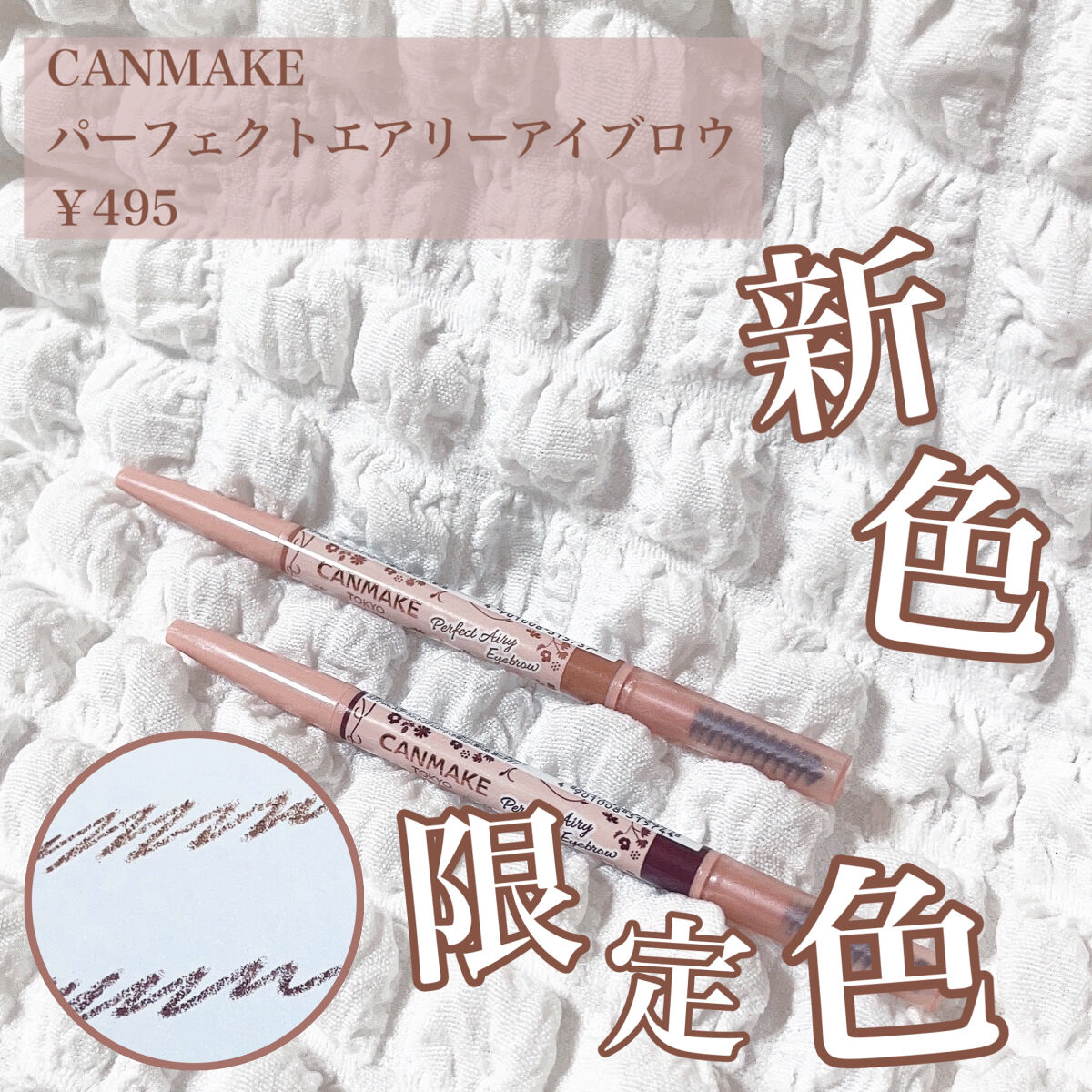 キャンメイクパーフェクトエアリーアイブロウ04ミルクティーブラウンリピ購入です🎀髪色が明るい時に使いやすい色。ピンク系のアイブロウパウダーとの相性も良いです💞しかも¥495という驚きの安さ!!韓国コスメとか他のブランドだとこの3倍くらいします...