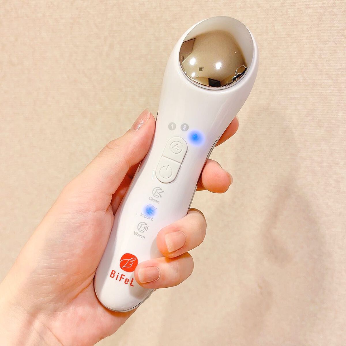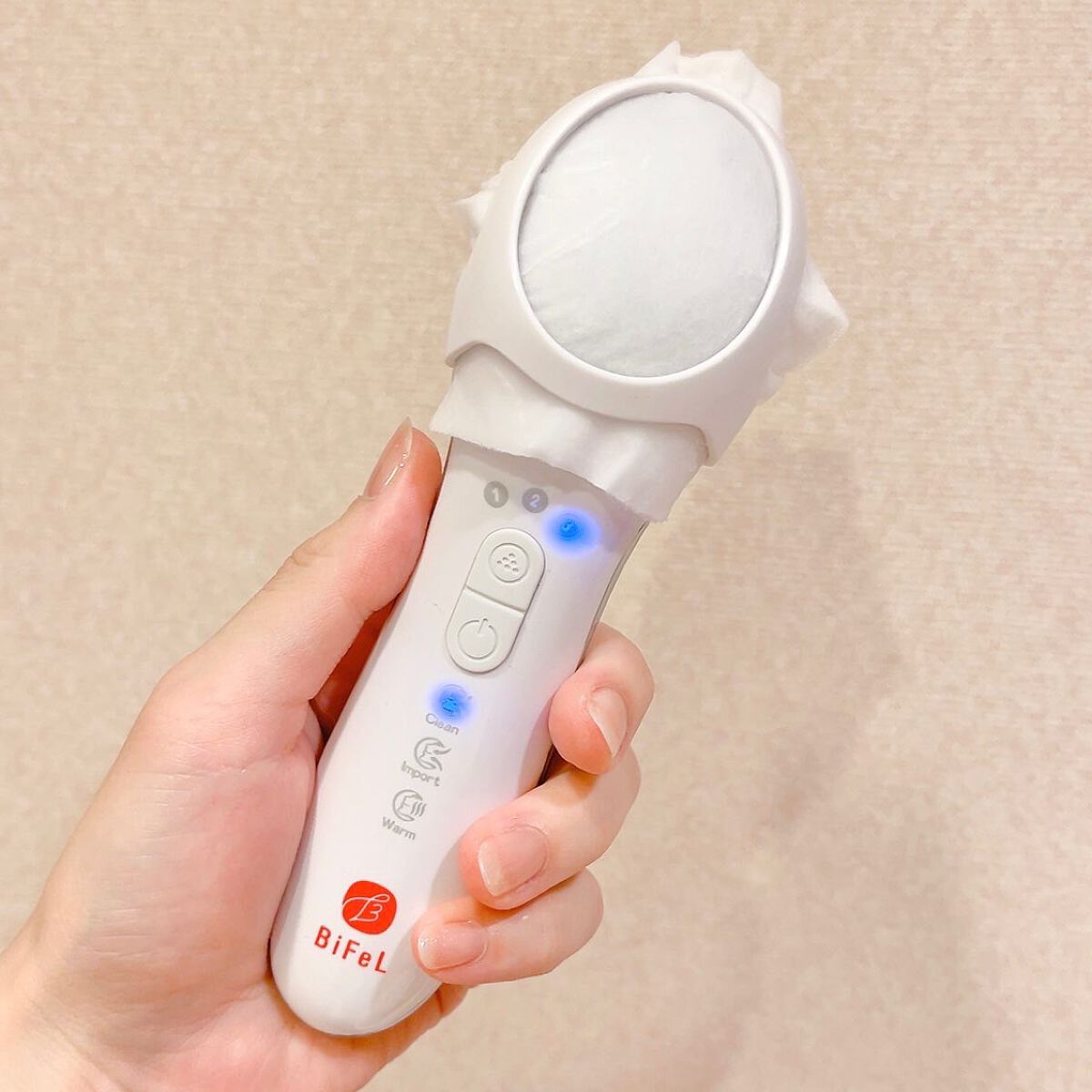 美顔器のモードは3種類⇩ クリーンモード クレンジングや洗顔で落としきれなかった汚れや古い角質を取り除きたい時に使うモード。 インポートモード イオンブースター専用のフェイスマスクに配合された成分をしっかり浸透※1させる時に使うモード。 ウォームモード マイクロカレント波(人間の体内に流れる電流と似た微弱な電流)と温感で肌を整えたい時に使うモード。 美顔器本体が想像より軽くて、ケアしながら手が疲れてしまうということもなく手軽にケアできます✨ 美容液がたっぷりでひたひたのシートマスク🤍 インポートモードで導入したあと、6分おくのですが、うっかり放置してしまっても乾いてなかったほど🫢 クリーンモードとウォームモードで日々のケア、特別な日の前にインポートモードも使用したフルコースのケアっていう使い方もいいなと思いました✨ これからも定期的に使用してキレイなお肌になれるように頑張ります🫧