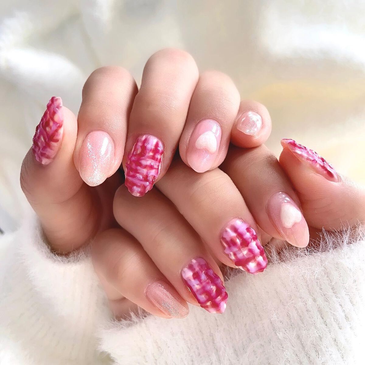 ダイソーの硬化タイプの新作は20種類!その中でもツイード柄は3種類もありました✨ツイード柄は秋冬の定番デザインではありますが、今回のデザインはどれも春まで活躍してくれそうなものばかり❤️ 特にブルーは夏でもよさそうかも!貼り比べてみるとそれぞれステキでした!ちなみにアンケートではピンクが1番人気で、その次がブルーでした! バレンタインらしいブラウン系のデザインもありました❤️他のデザインも使い比べてみたらまた紹介するつもりです😊