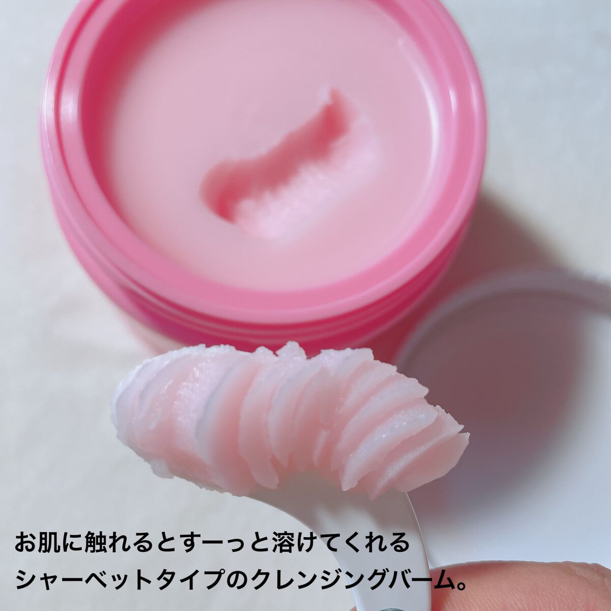 - #ディープクレンジング #しっとり保湿クレンジング シャーベットが肌に触れるととろりと溶けて、やさしくメイクを落とすクレンジングバーム。やさしい使い心地なのに濃いメイクと肌の汚れや老廃物をすっきりディープクレンジングします。ハス花エキス*8800ppmと桃エキス*が透明感のある明るい肌に整えます。*保湿成分