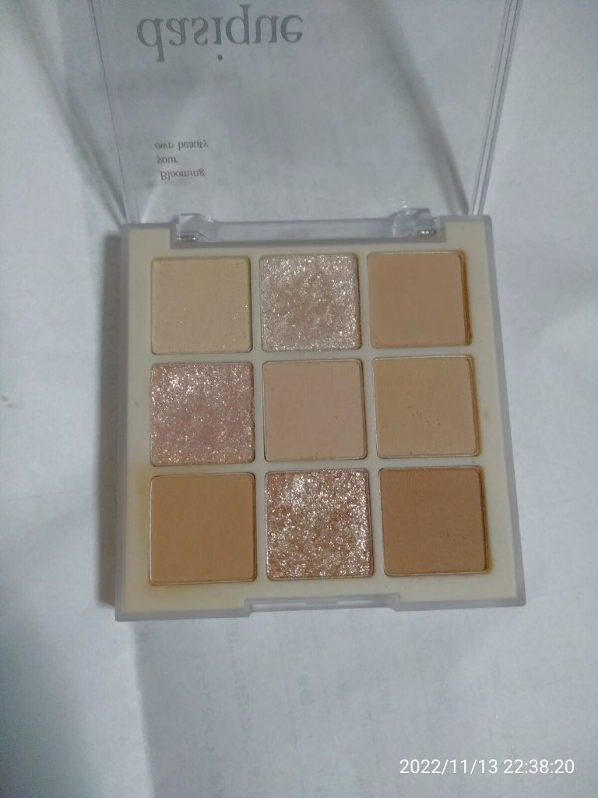 左上のラメもプチプラとは思えないくらい綺麗✨ 01ナッツベージュは少しオレンジっぽいベージュだから、イエベカラーが苦手な方は別のカラーをお勧めします💓 粉質もすごくよくて、粉飛びしないしちょうどいい😻🌟